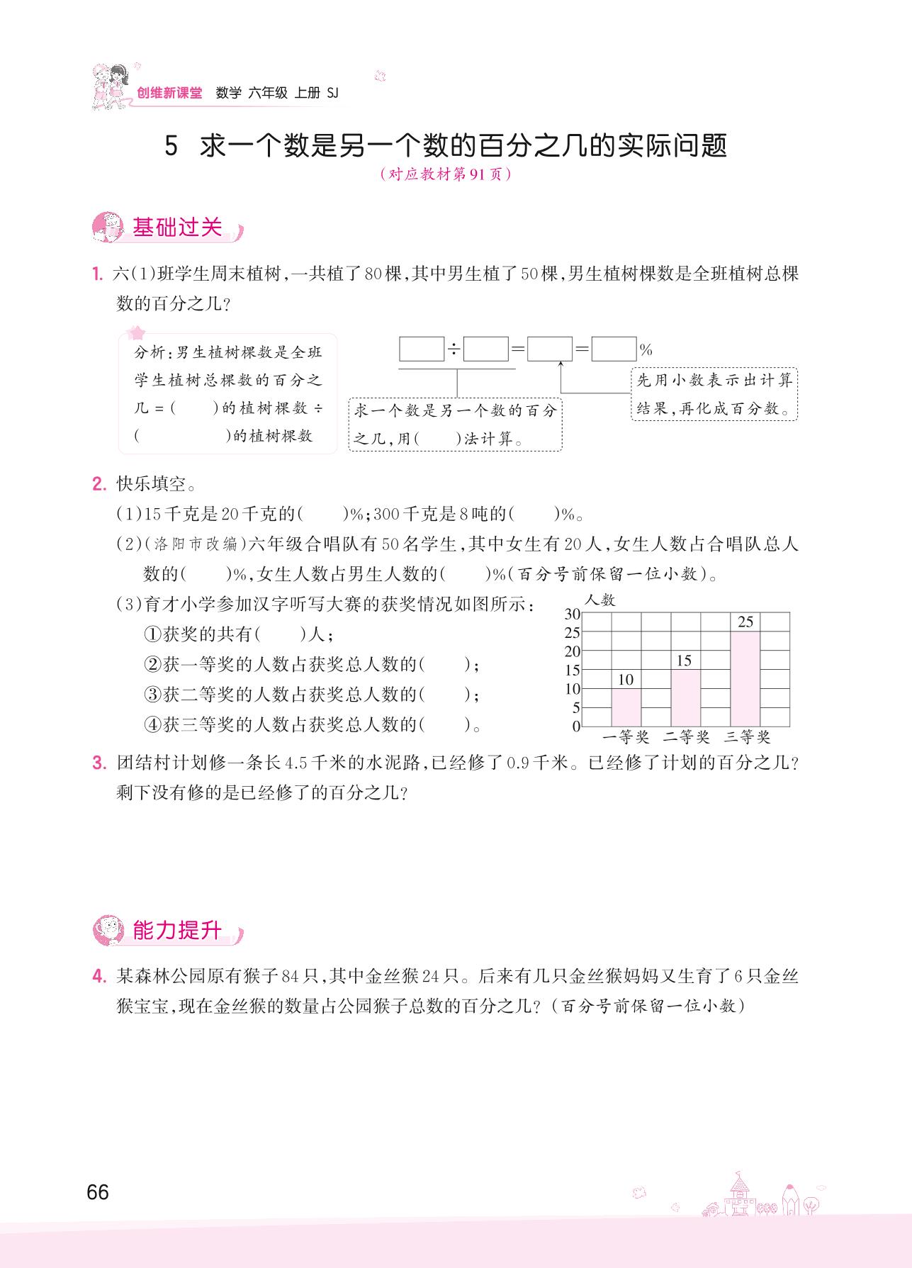 2022上册六年级数学苏教版 六 百分数——5 求一个数是另一个数的百分之几的实际问题