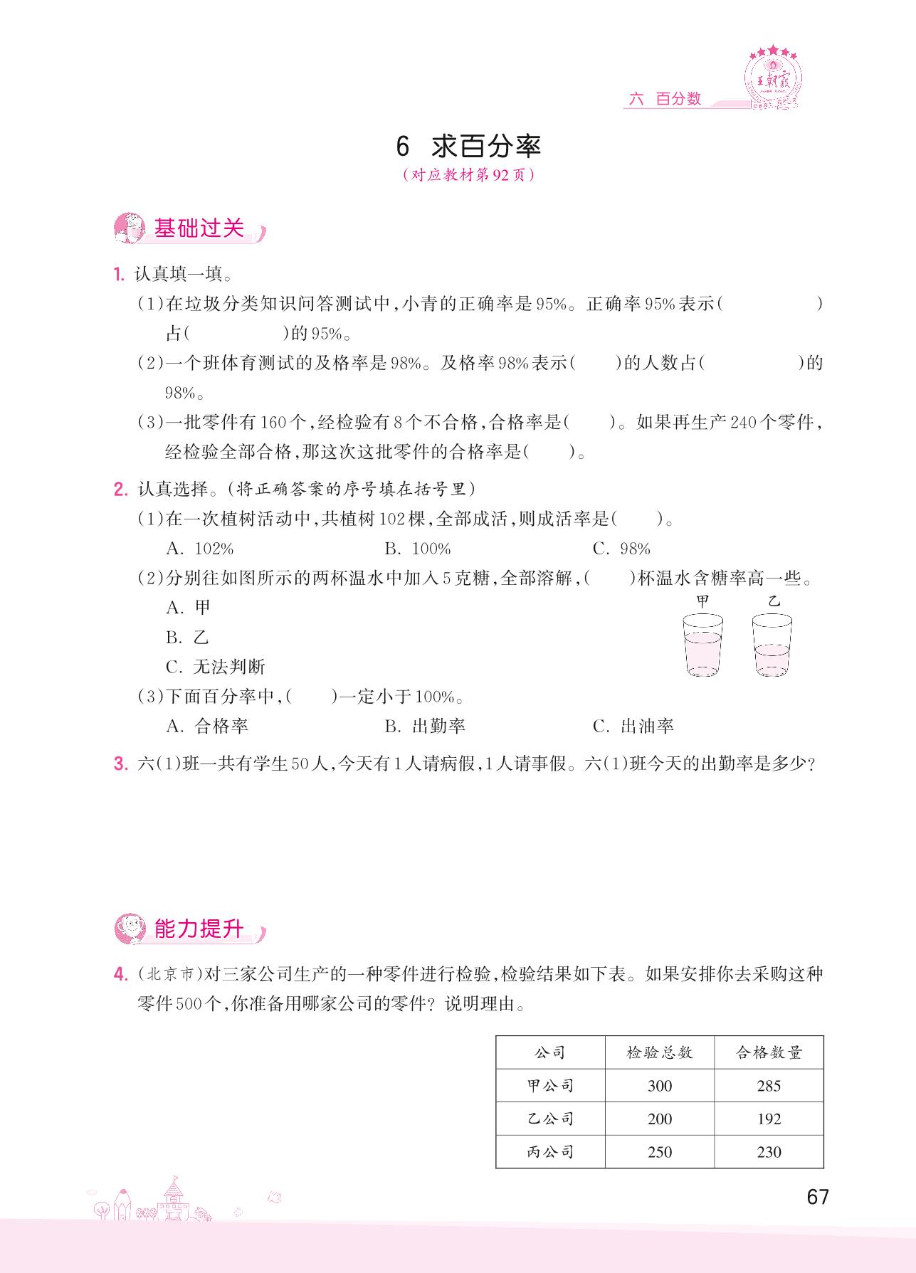 2022上册六年级数学苏教版 六 百分数——6 求百分率