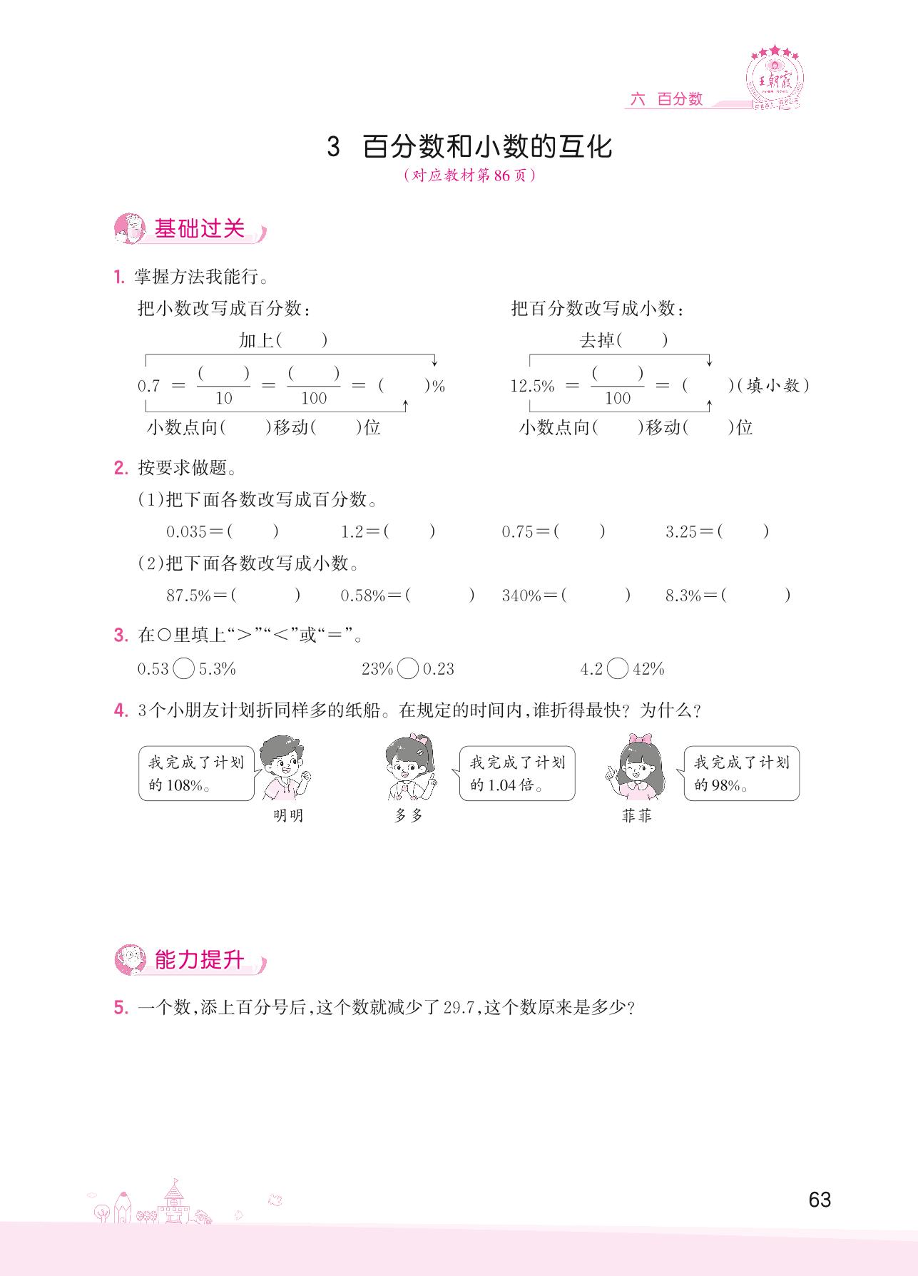 2022上册六年级数学苏教版 六 百分数——3 百分数和小数的互化