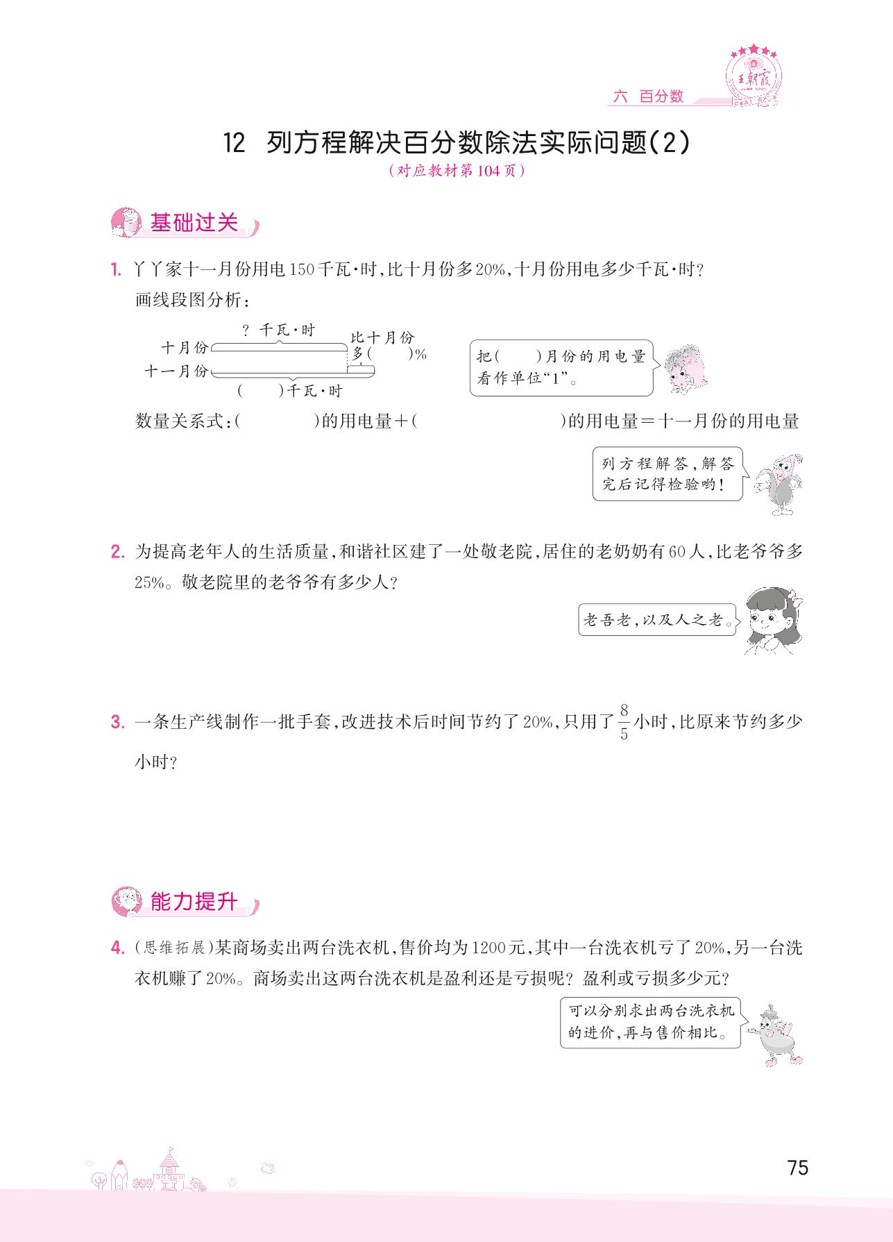 2022上册六年级数学苏教版 六 百分数——12 列方程解决百分数除法实际问题(2)