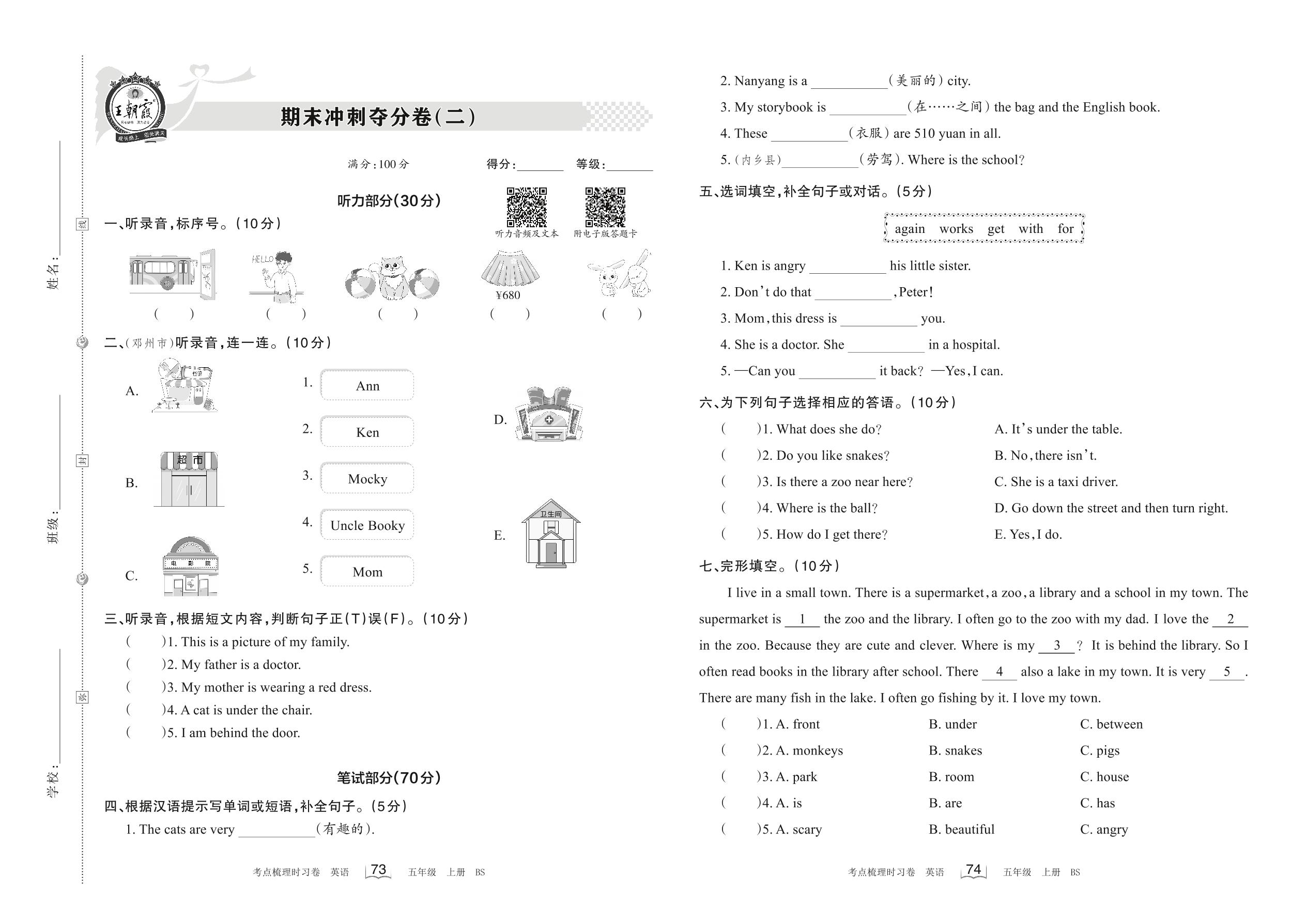 2022上册五年级英语北师版 期末冲刺夺分卷(二)