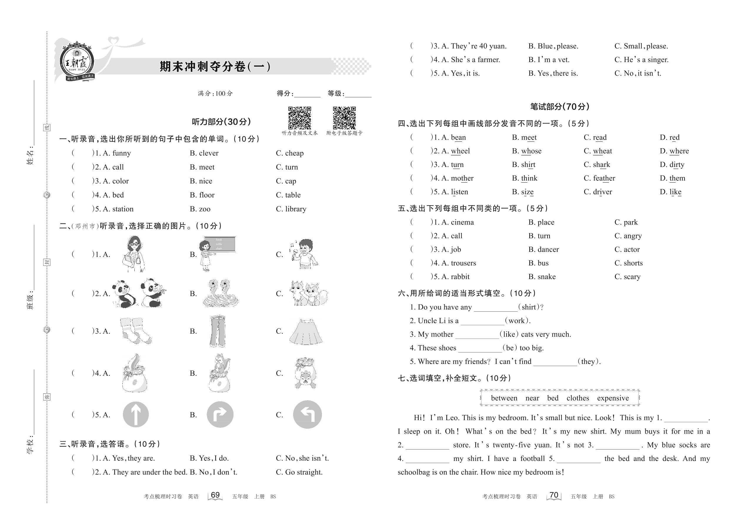 2022上册五年级英语北师版 期末冲刺夺分卷(一)