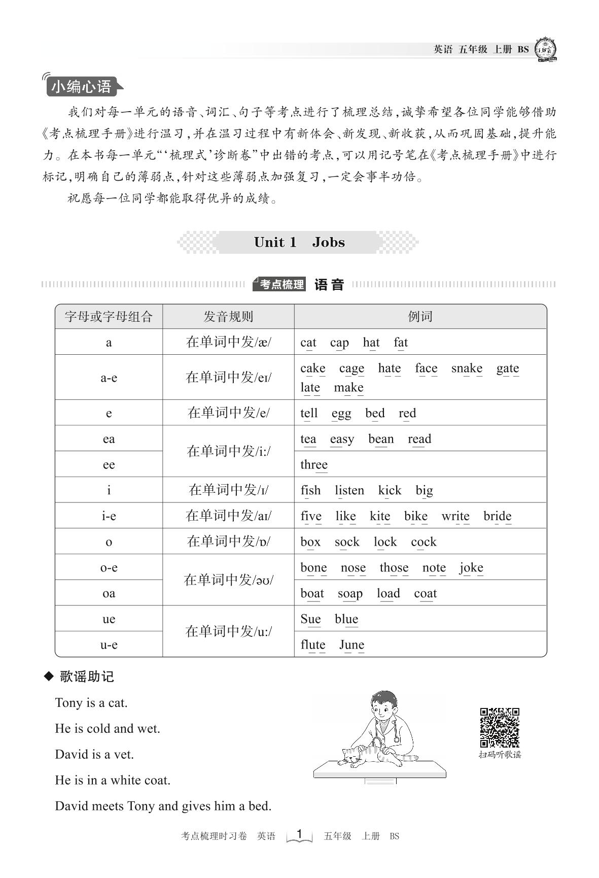 2022上册五年级英语北师版 考点梳理手册——Unit 1 Jobs