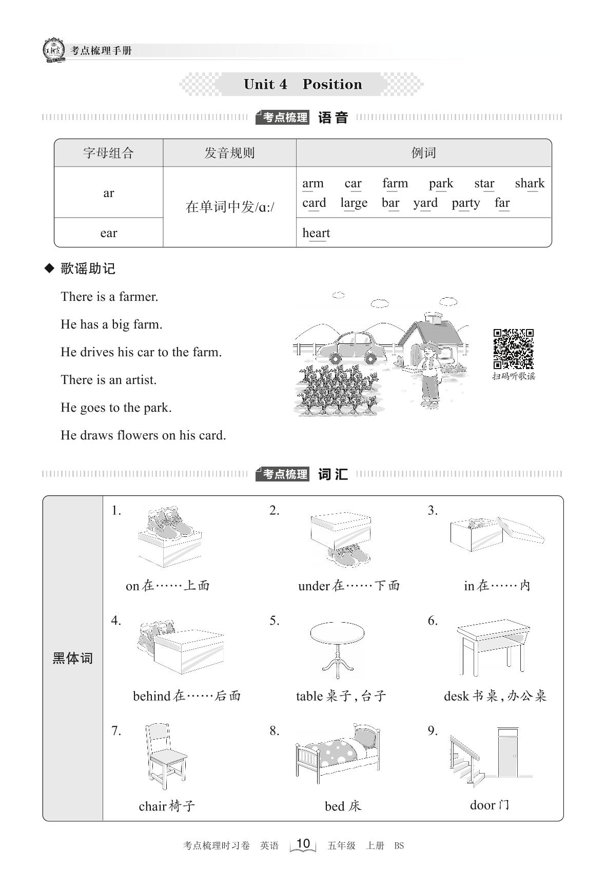 2022上册五年级英语北师版 考点梳理手册——Unit 4 Position