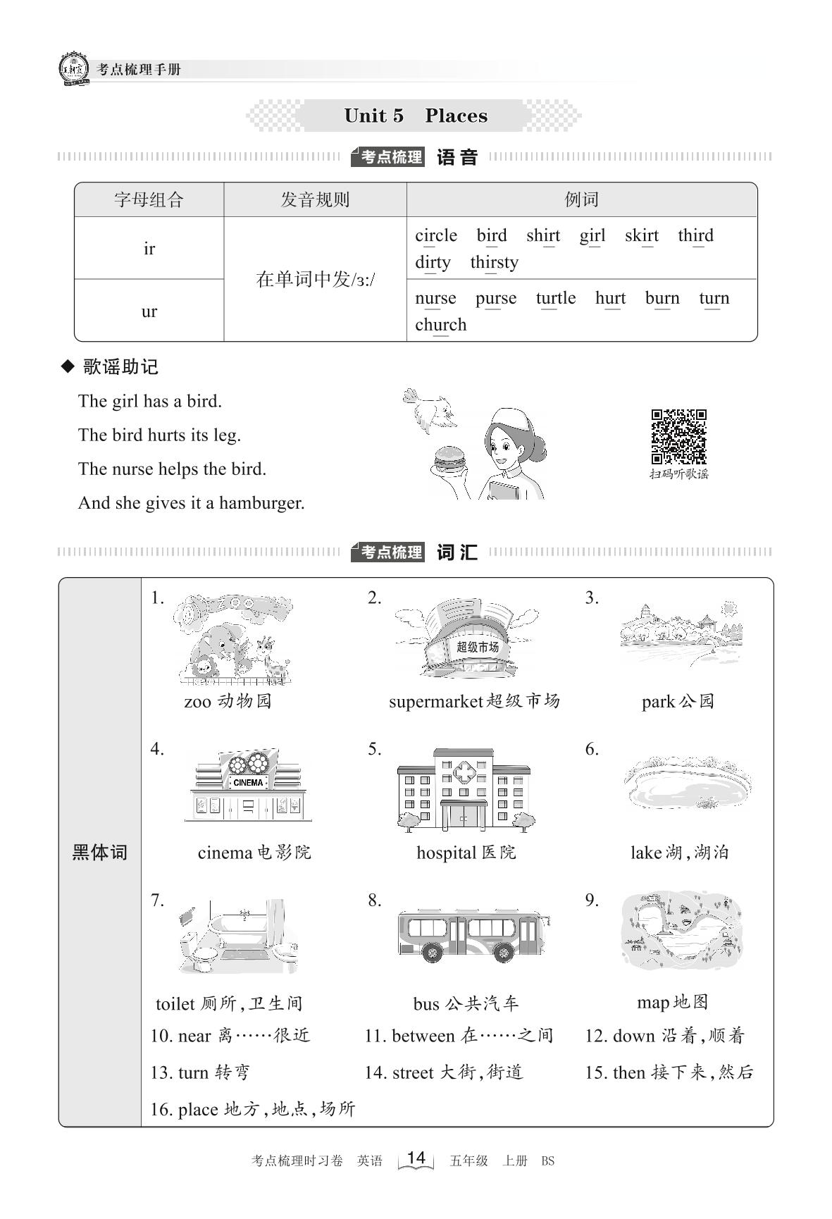 2022上册五年级英语北师版 考点梳理手册——Unit 5 Places