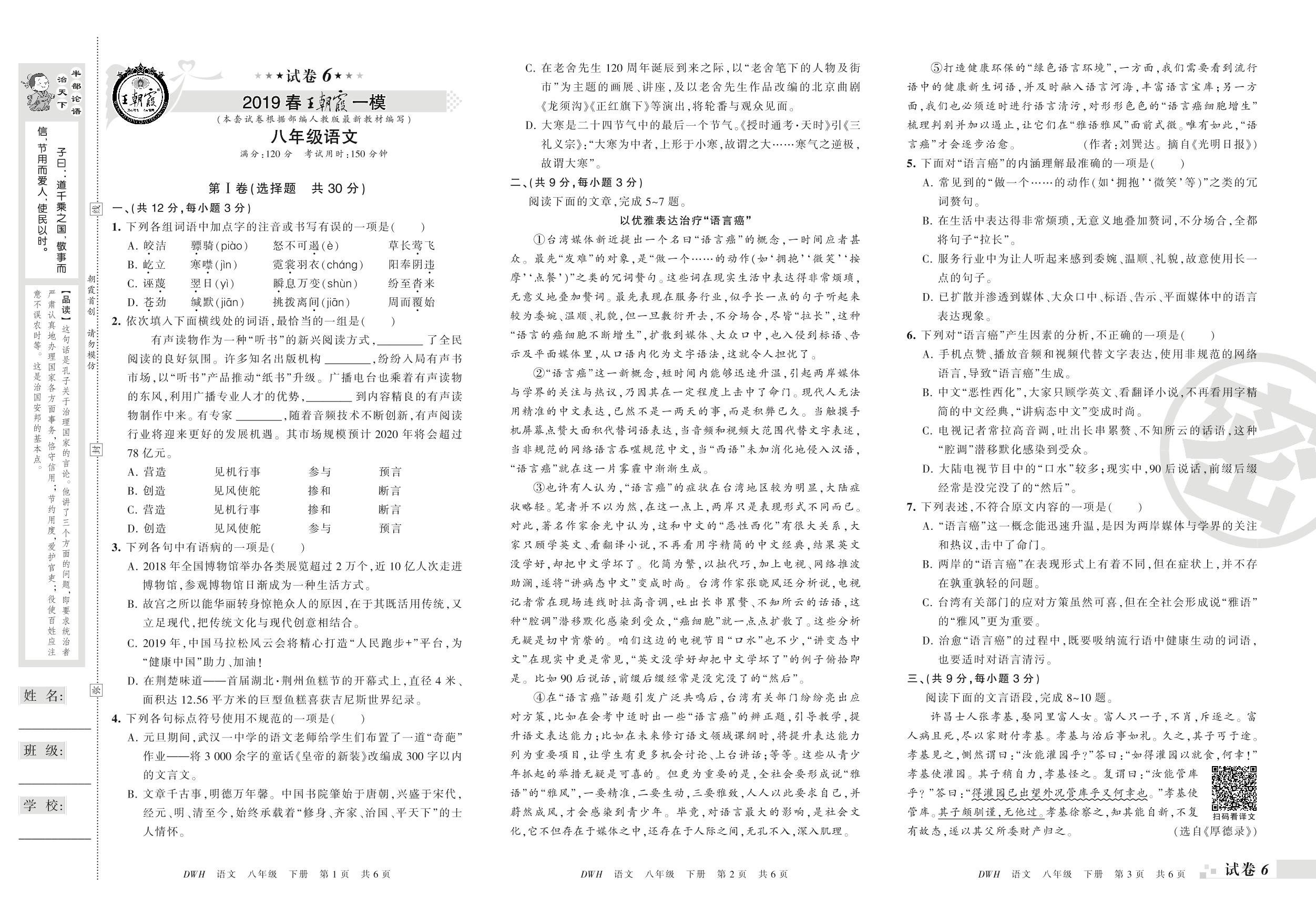 王朝霞期末模拟卷八年级下册语文(人教版)_R21080243728【6】
