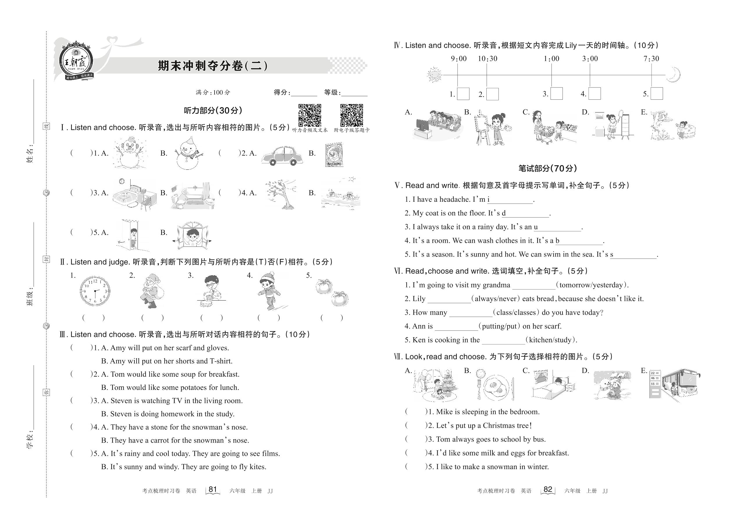2022上册六年级英语冀教版 期末冲刺夺分卷(二)