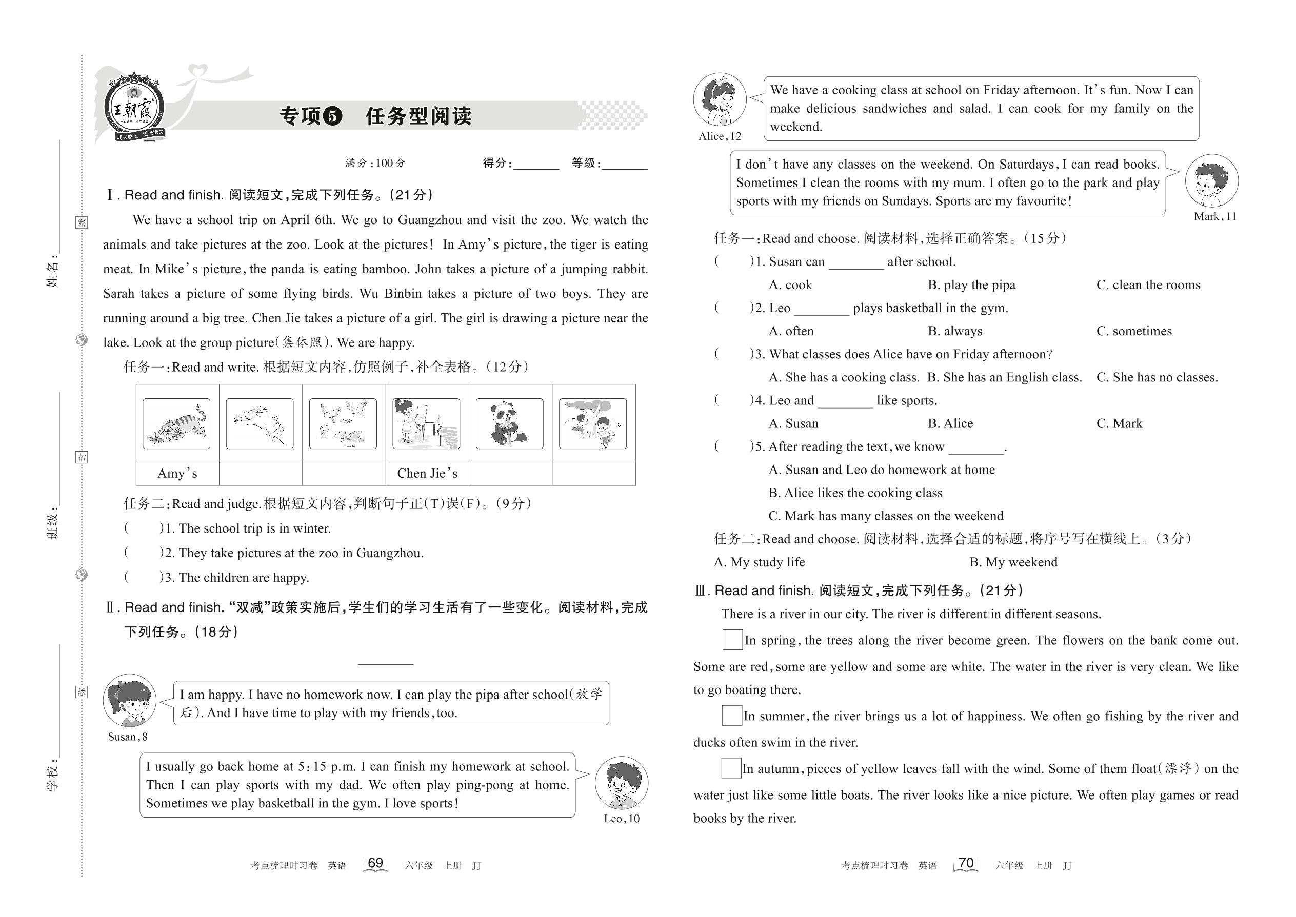 2022上册六年级英语冀教版 专项5 任务型阅读