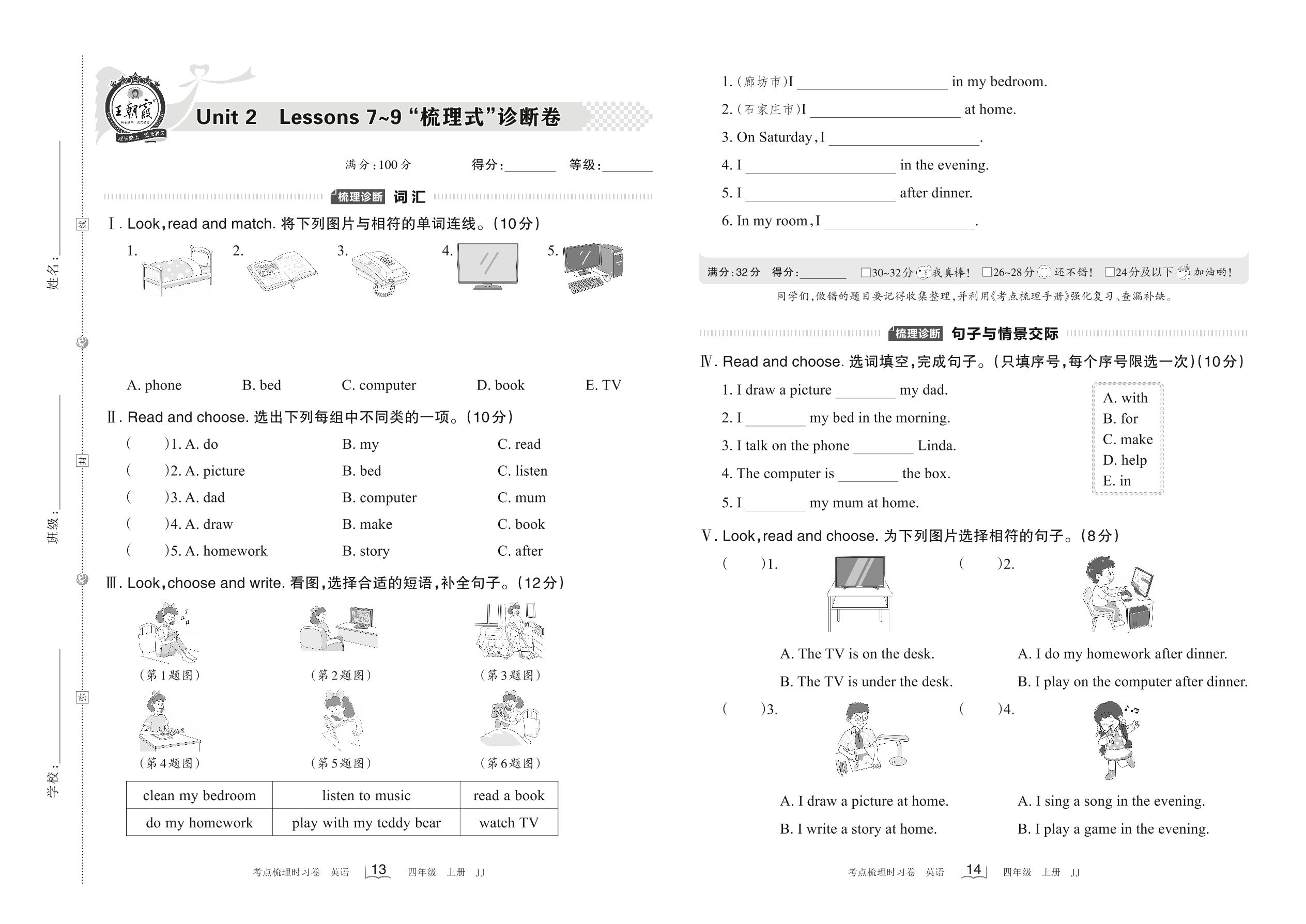 2022上册四年级英语冀教版 Unit 2 Lessons 7~9 “梳理式”诊断卷