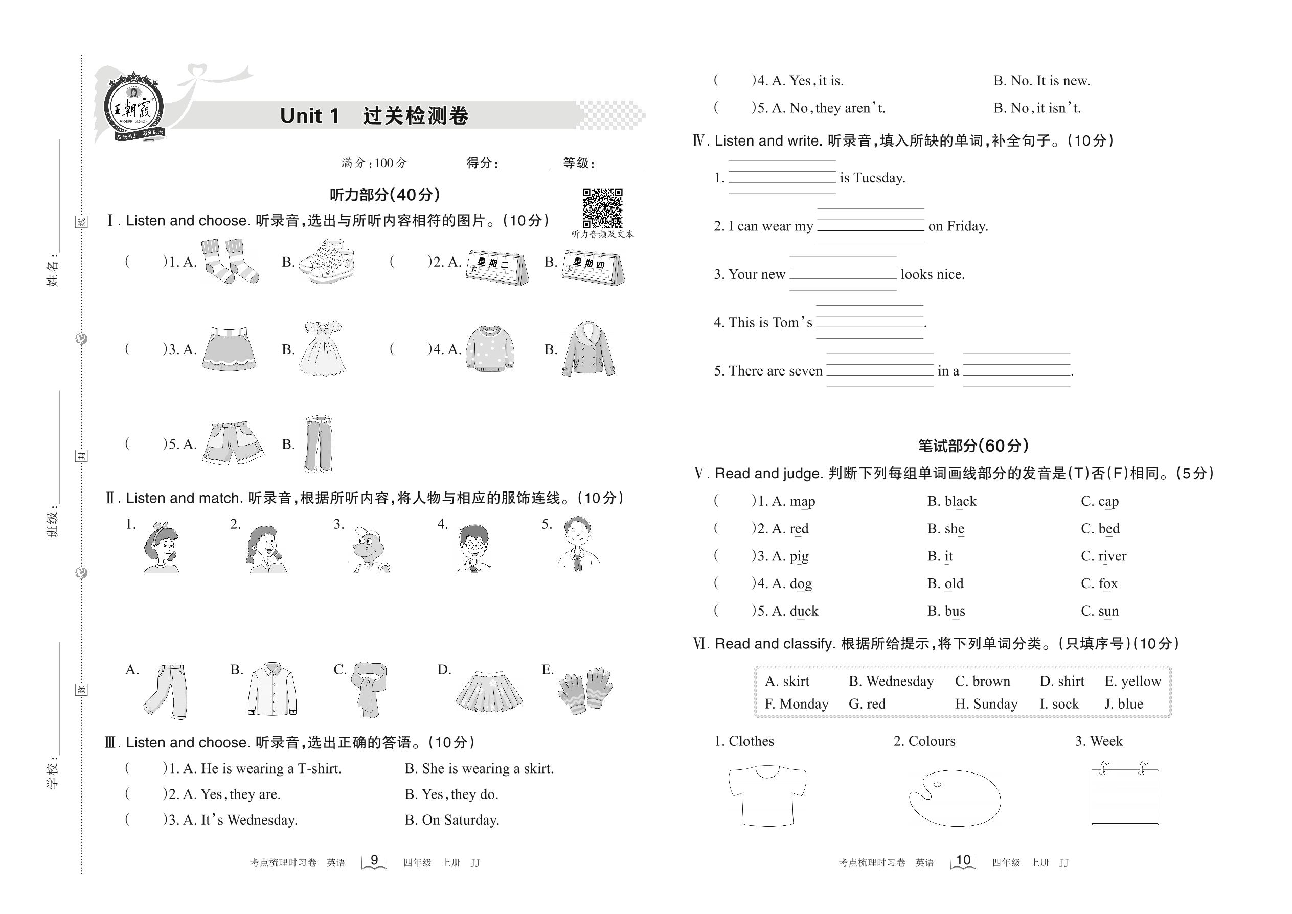 四年级英语冀教版上册单元卷