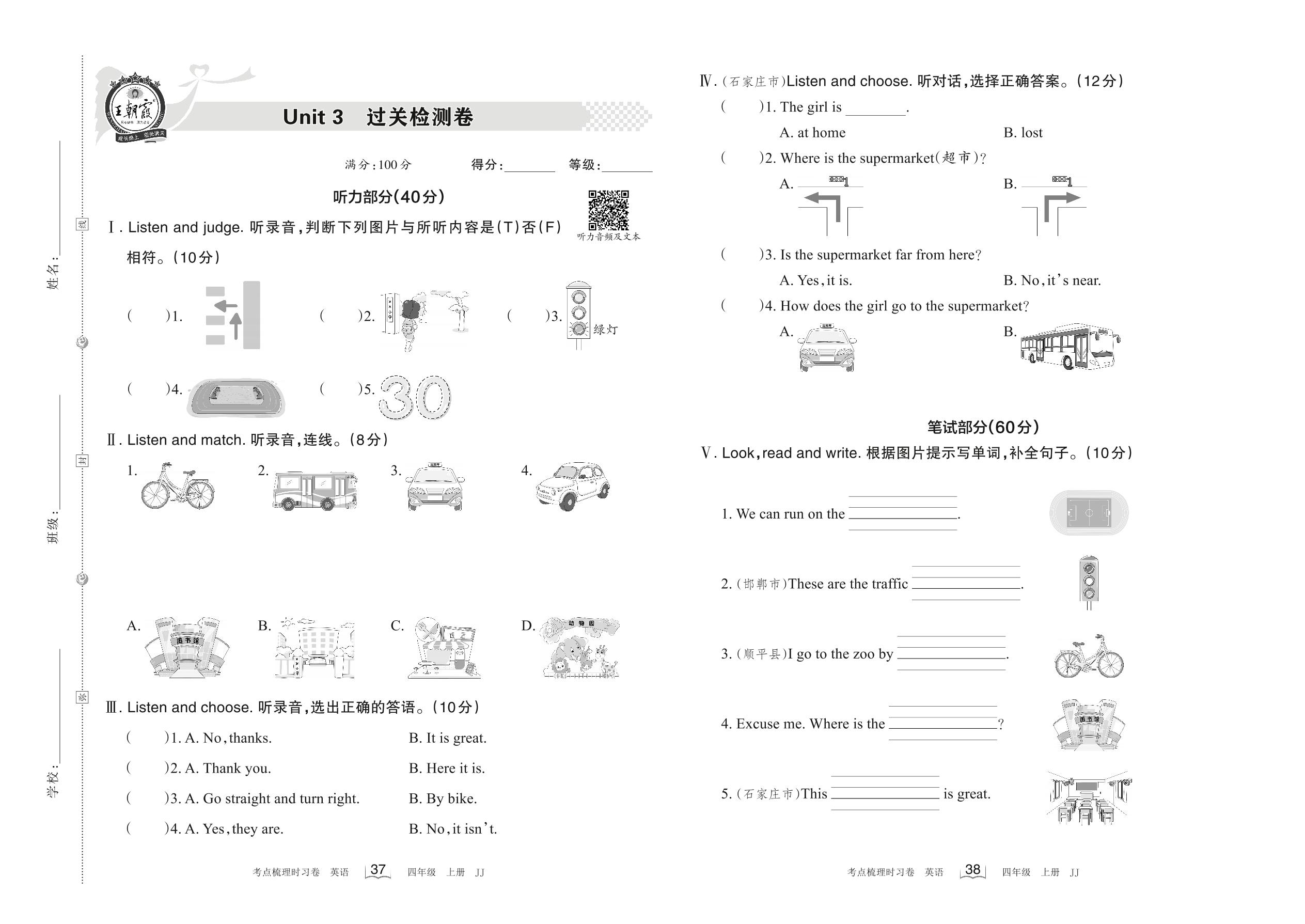 2022上册四年级英语冀教版 Unit 3 过关检测卷