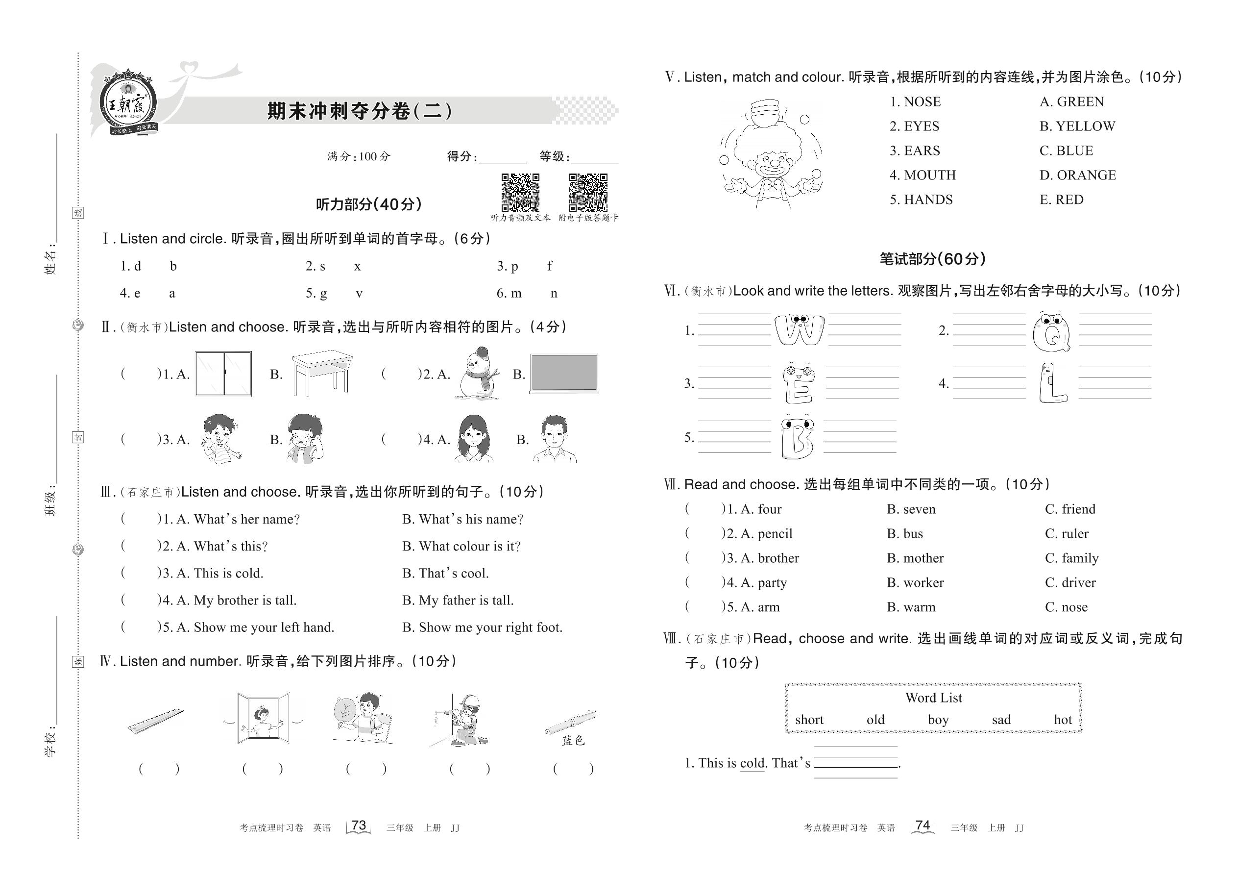 2022上册三年级英语冀教版 期末冲刺夺分卷(二)