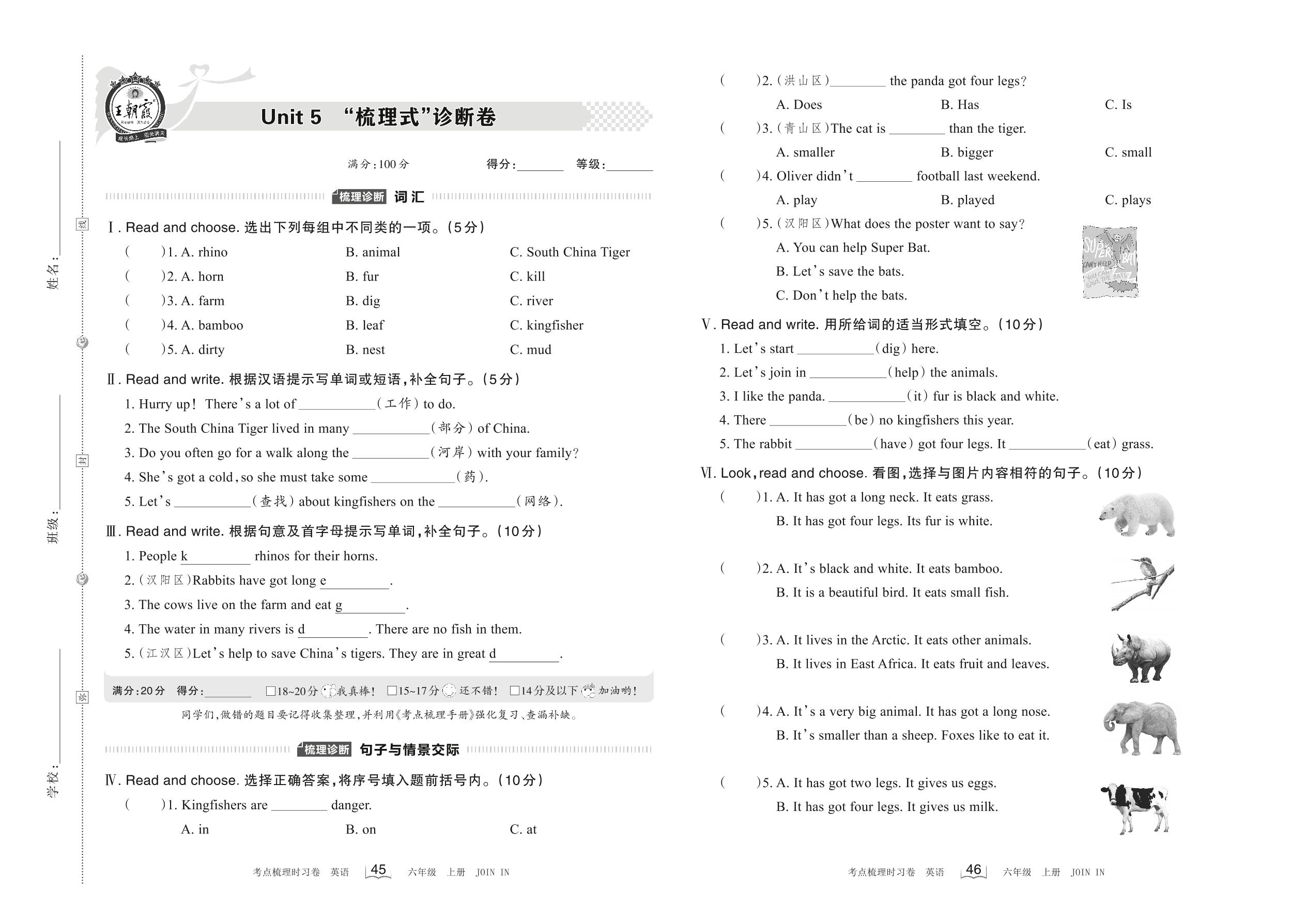 2022上册六年级英语剑桥版 Unit 5 “梳理式”诊断卷