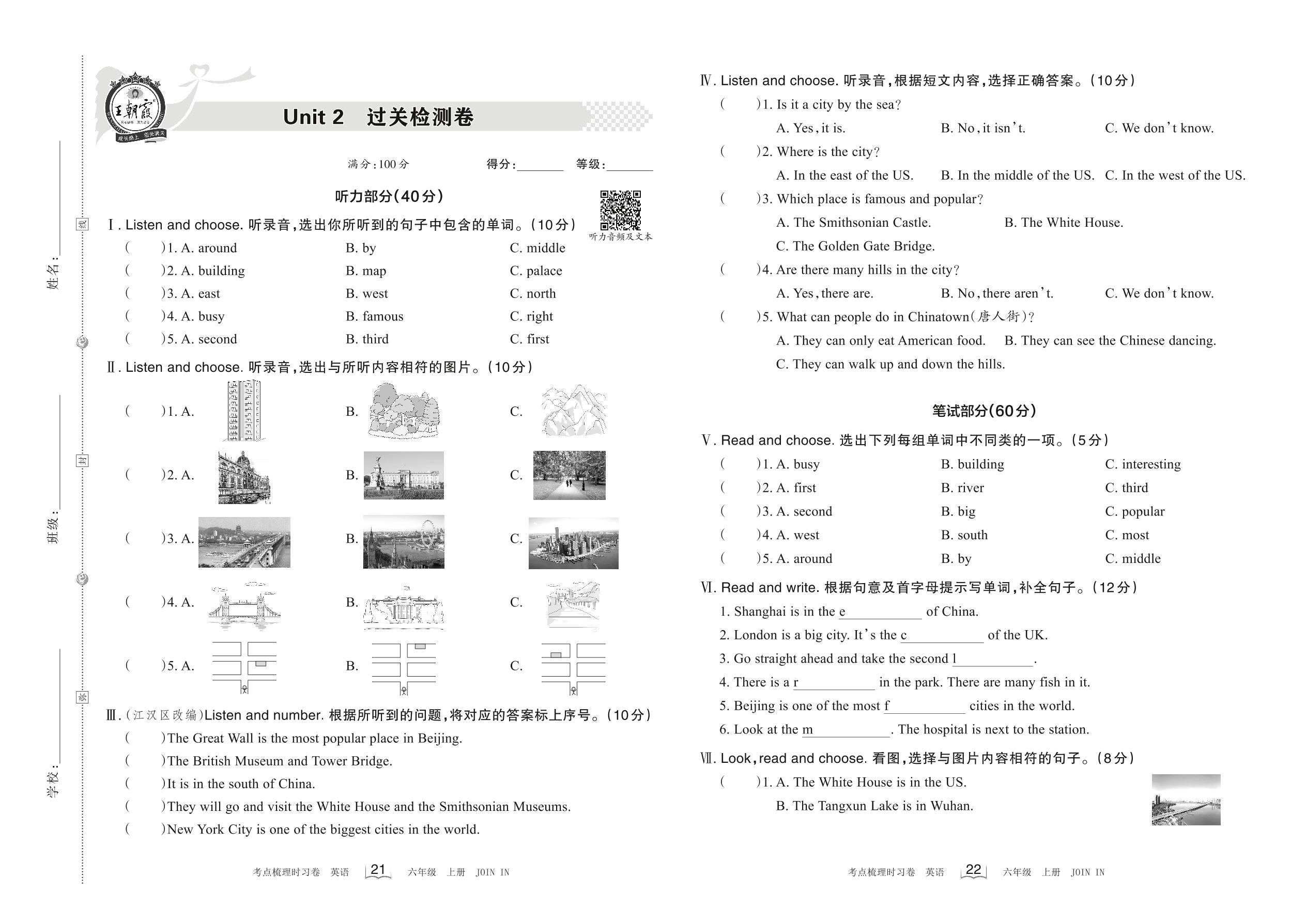 2022上册六年级英语剑桥版 Unit 2 过关检测卷