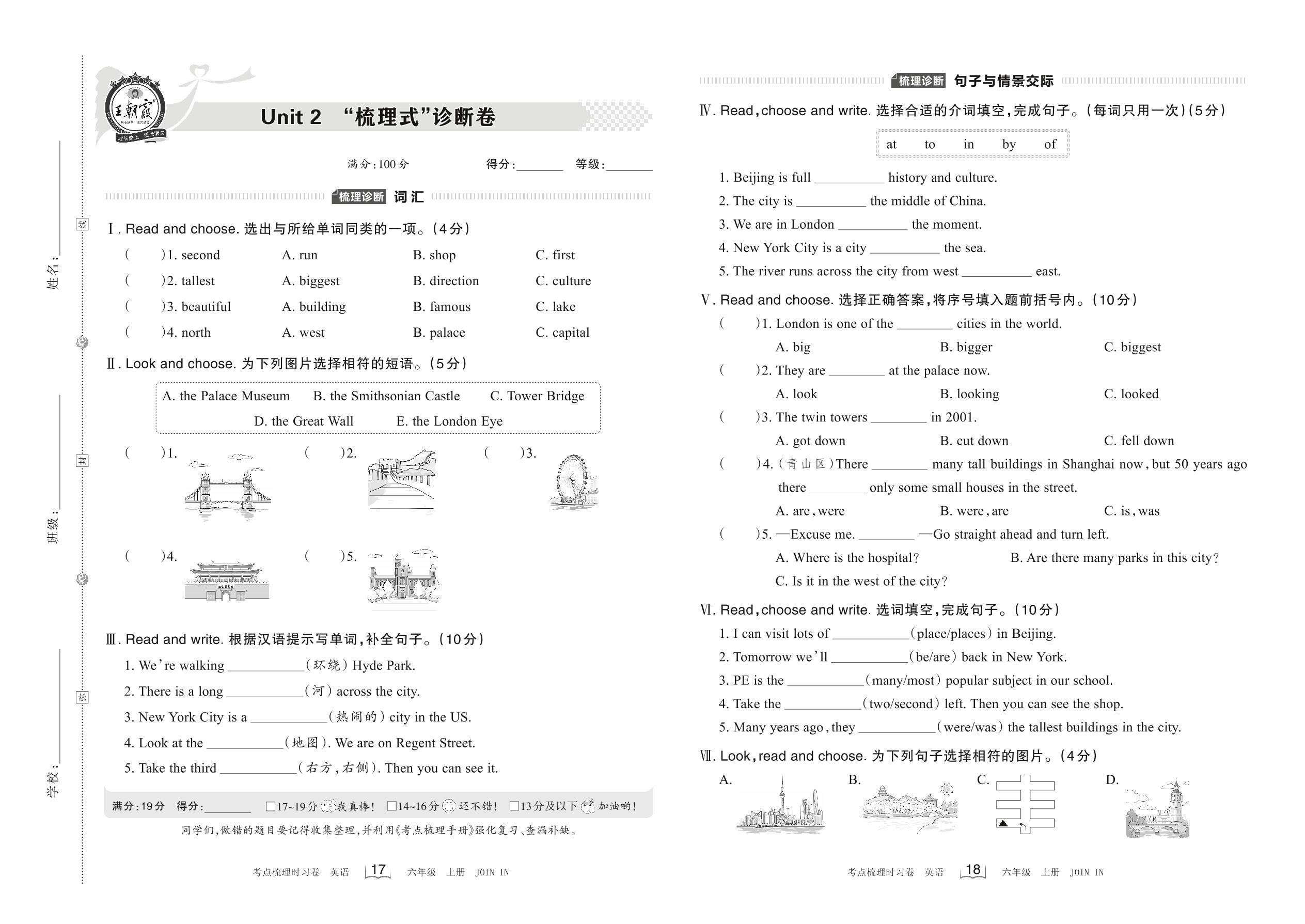 2022上册六年级英语剑桥版 Unit 2 “梳理式”诊断卷