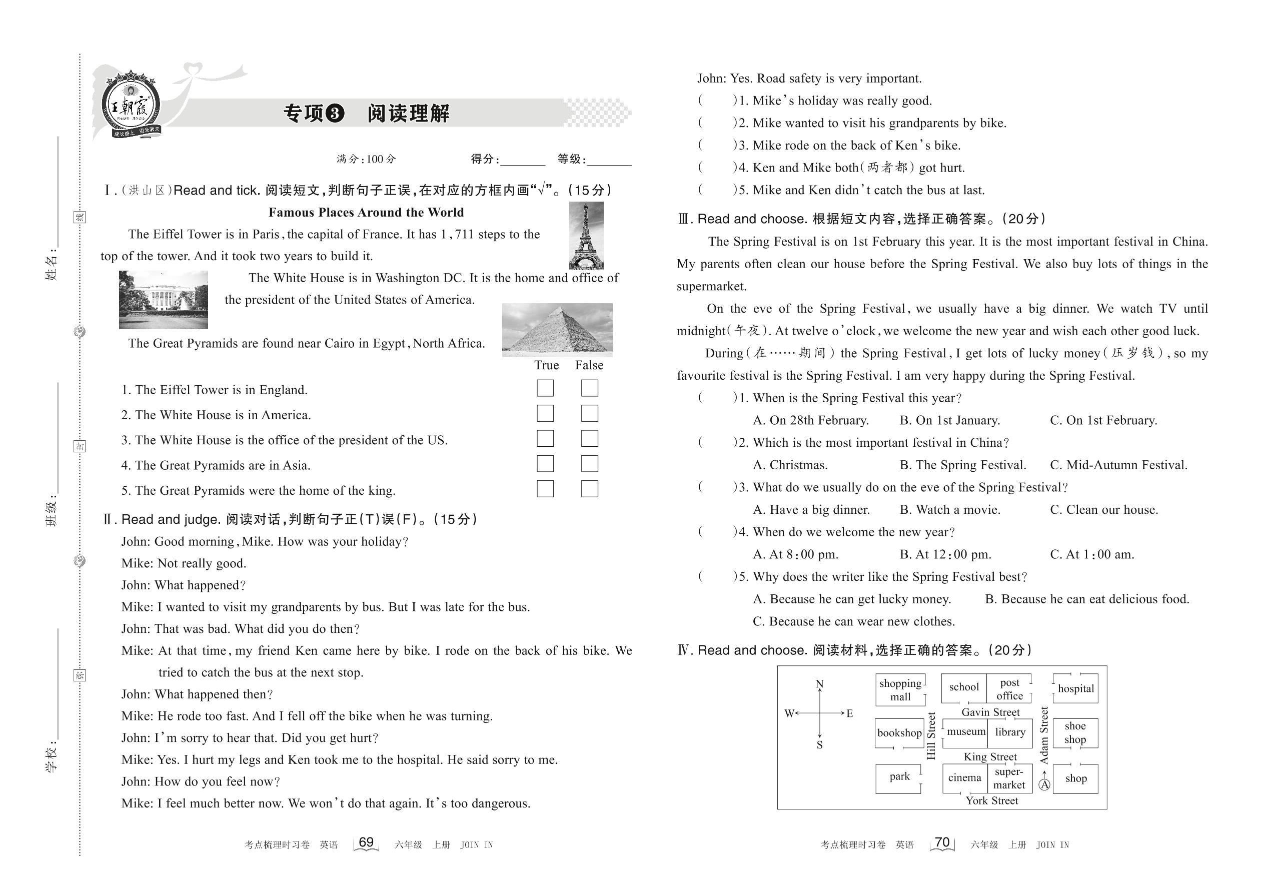 2022上册六年级英语剑桥版 专项3 阅读理解