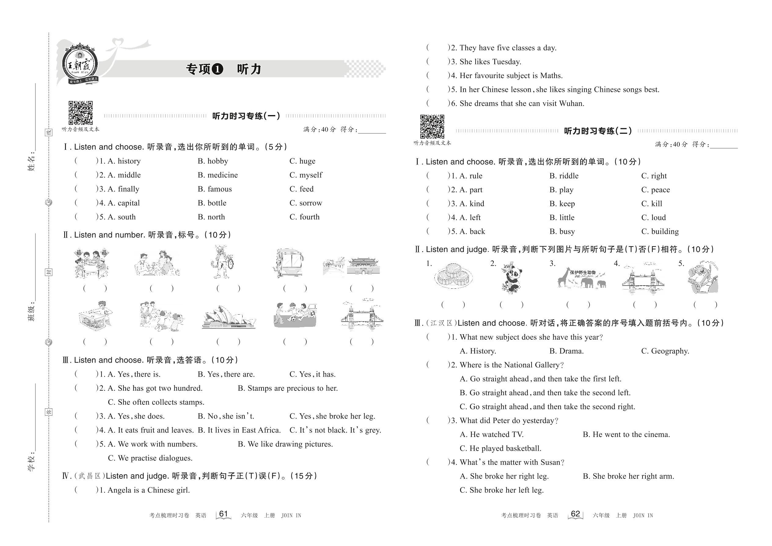 2022上册六年级英语剑桥版 专项1 听力