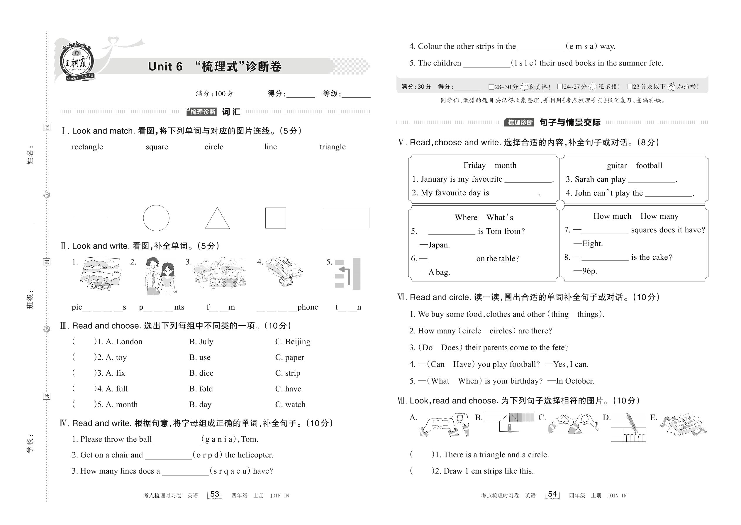2022上册四年级英语剑桥版 Unit 6 “梳理式”诊断卷