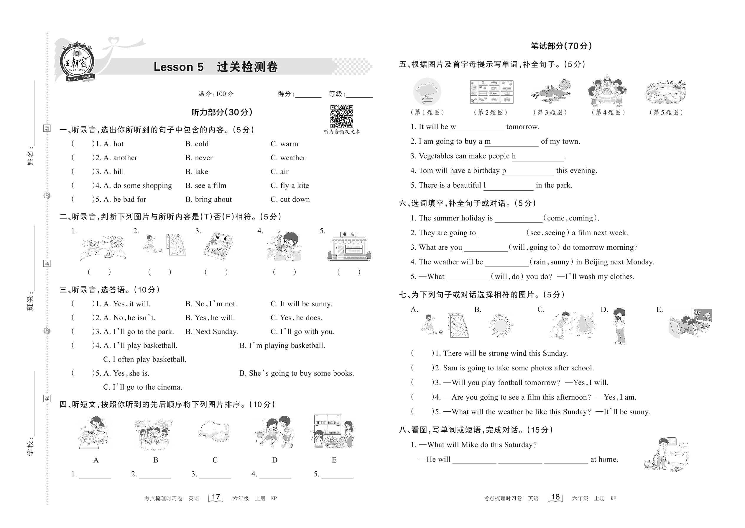2022上册六年级英语科普版 Lesson 5 过关检测卷