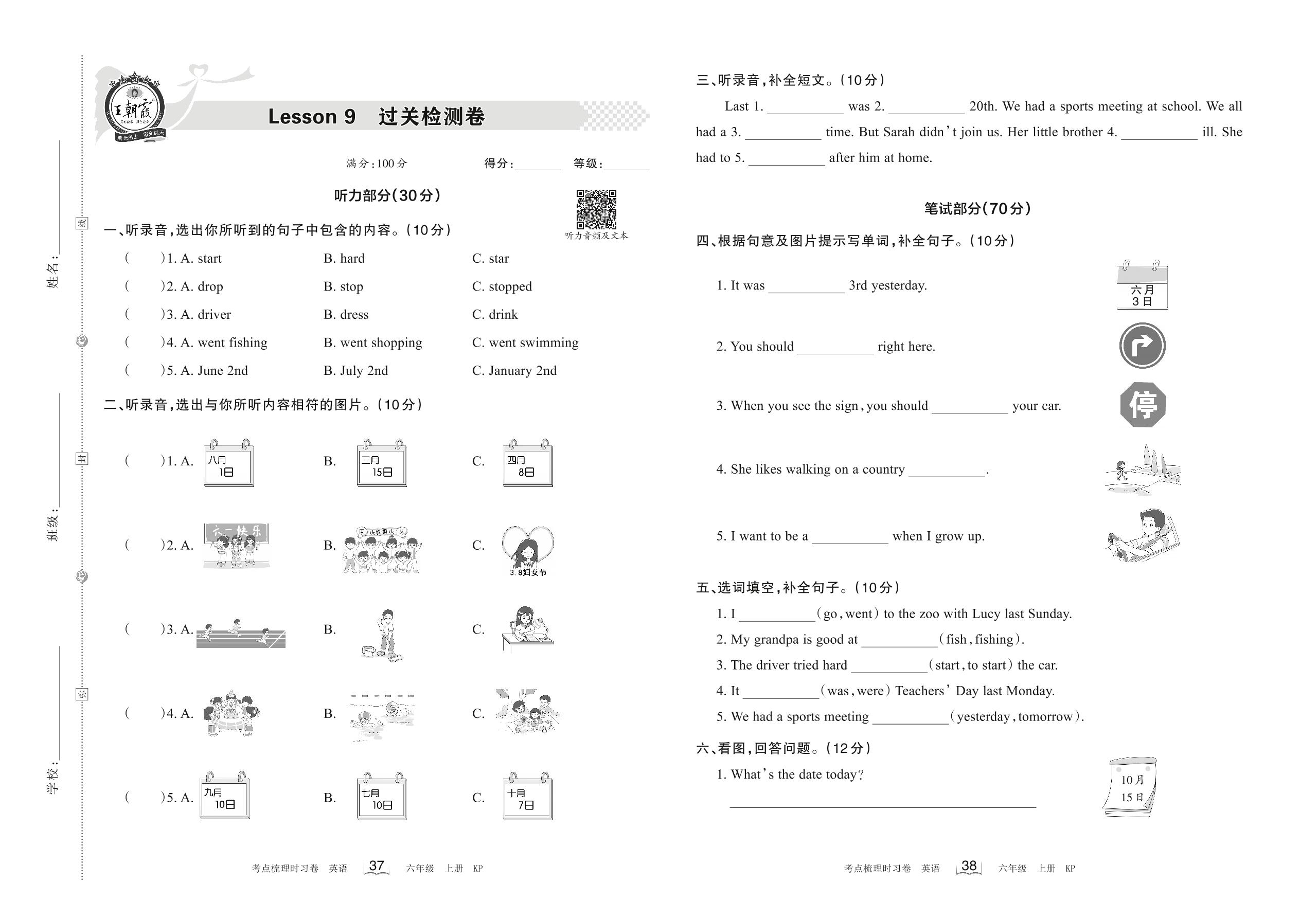 2022上册六年级英语科普版 Lesson 9 过关检测卷