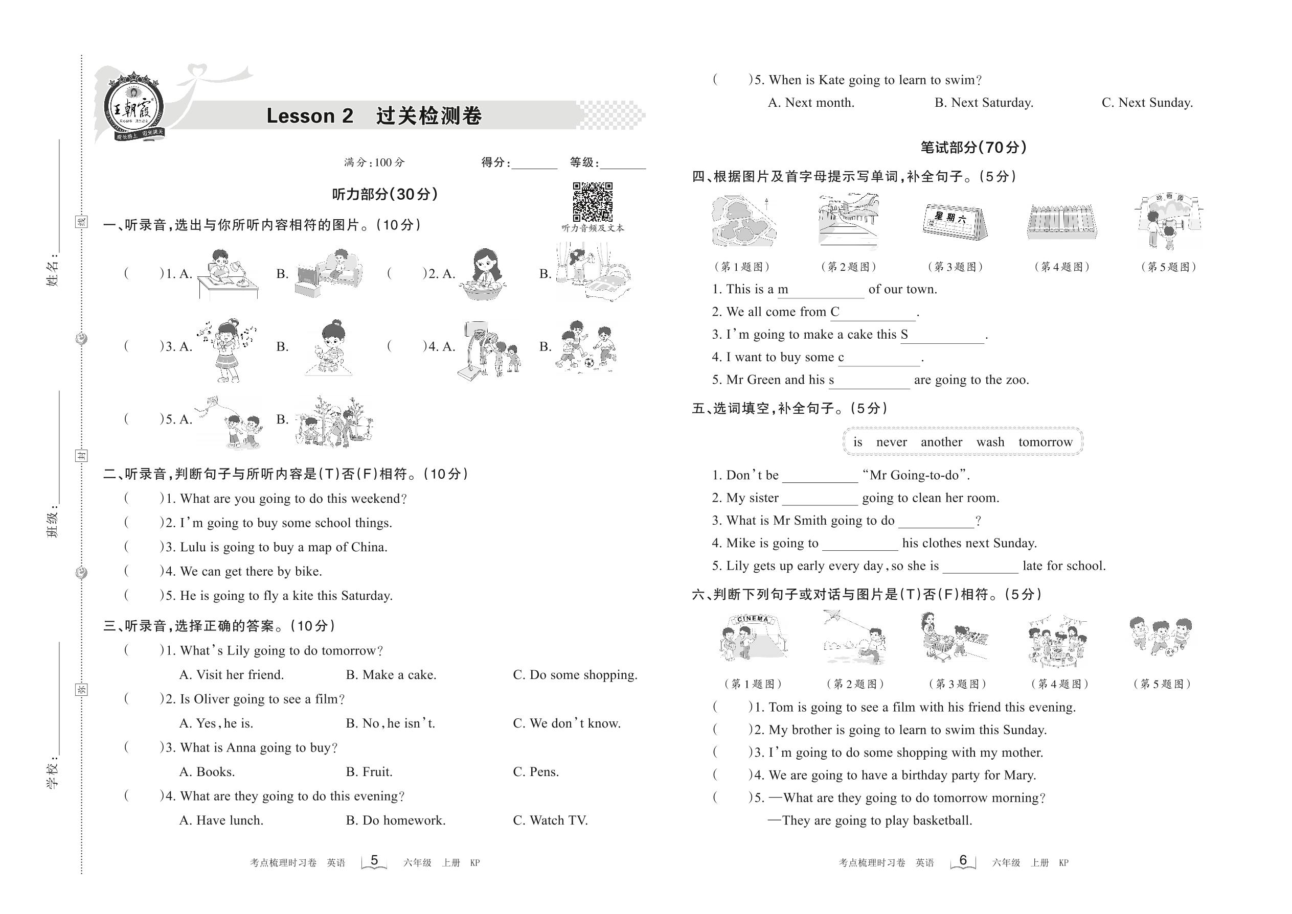 2022上册六年级英语科普版 Lesson 2 过关检测卷