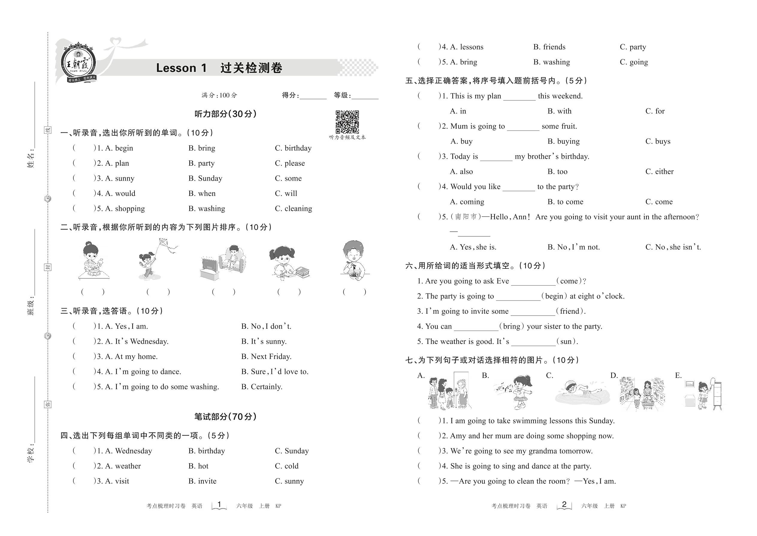六年级英语科普版上册单元卷
