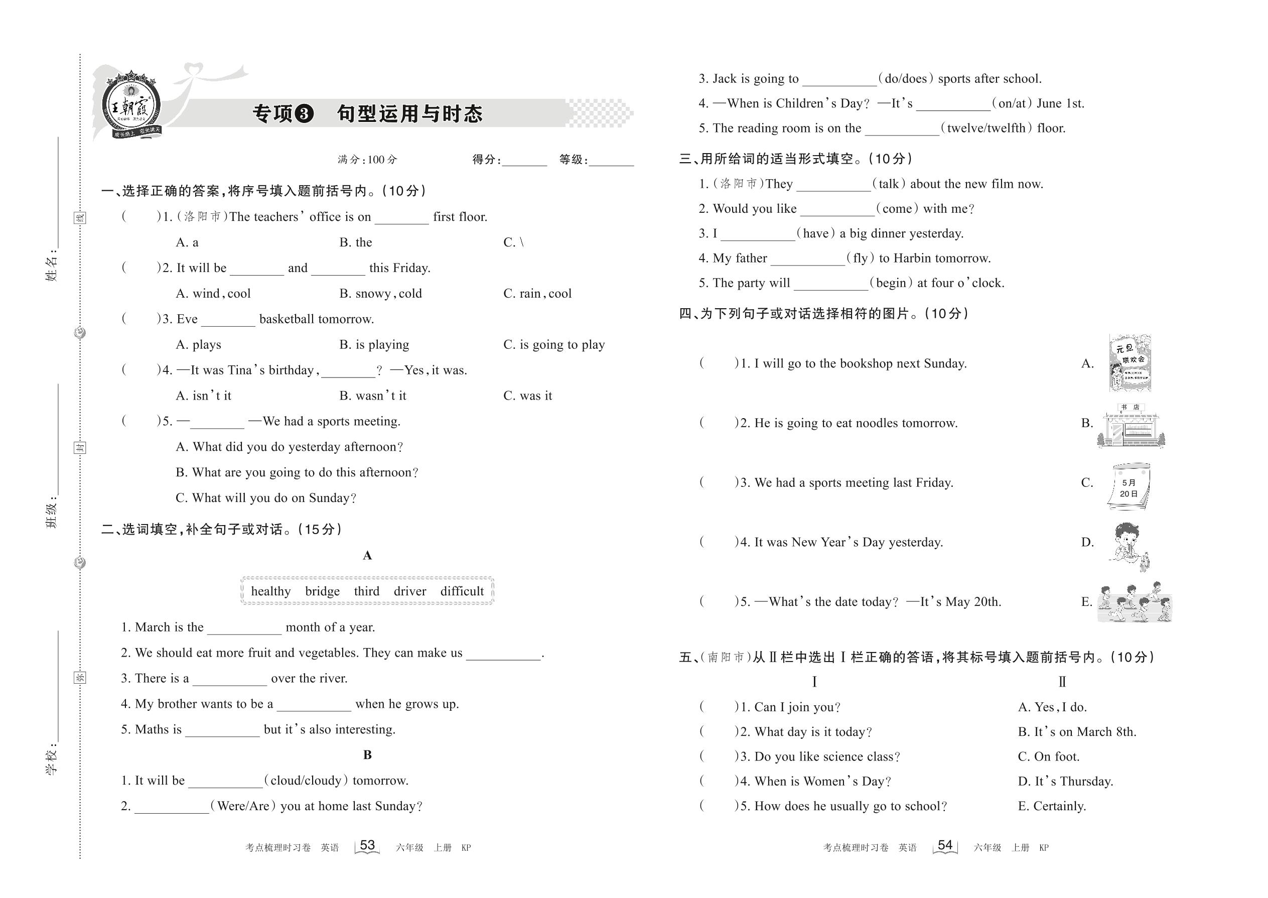 2022上册六年级英语科普版 专项3 句型运用与时态