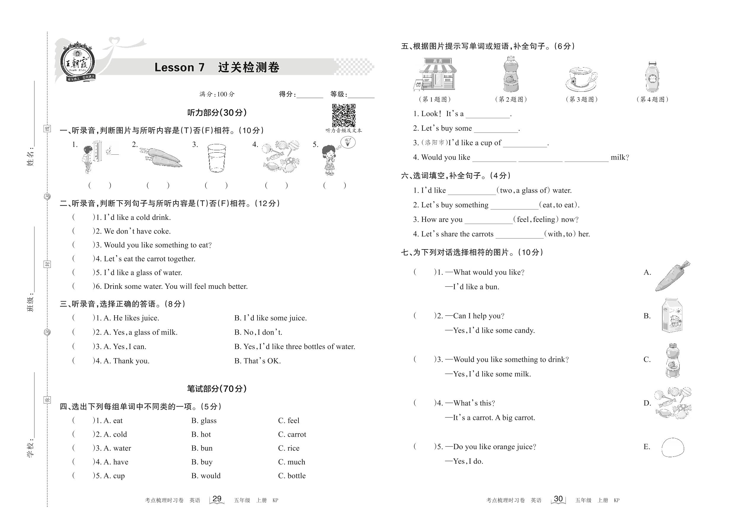 2022上册五年级英语科普版 Lesson 7 过关检测卷