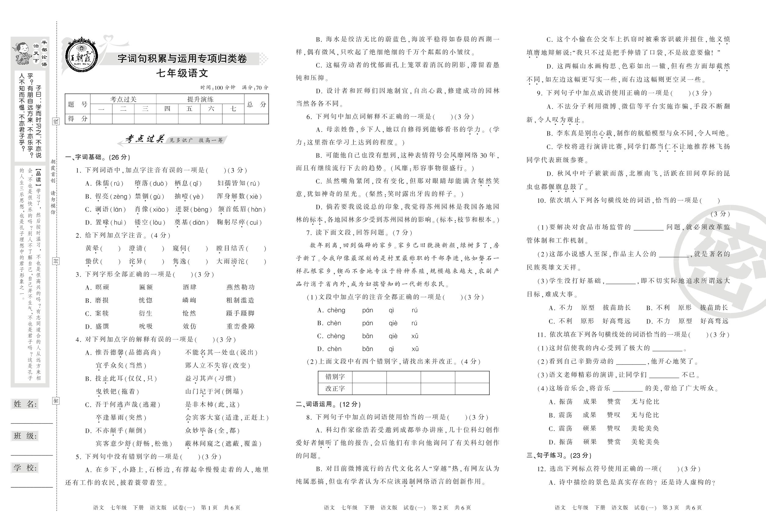 王朝霞期末专项卷七年级下册语文(语文版)_R21080243939【1】