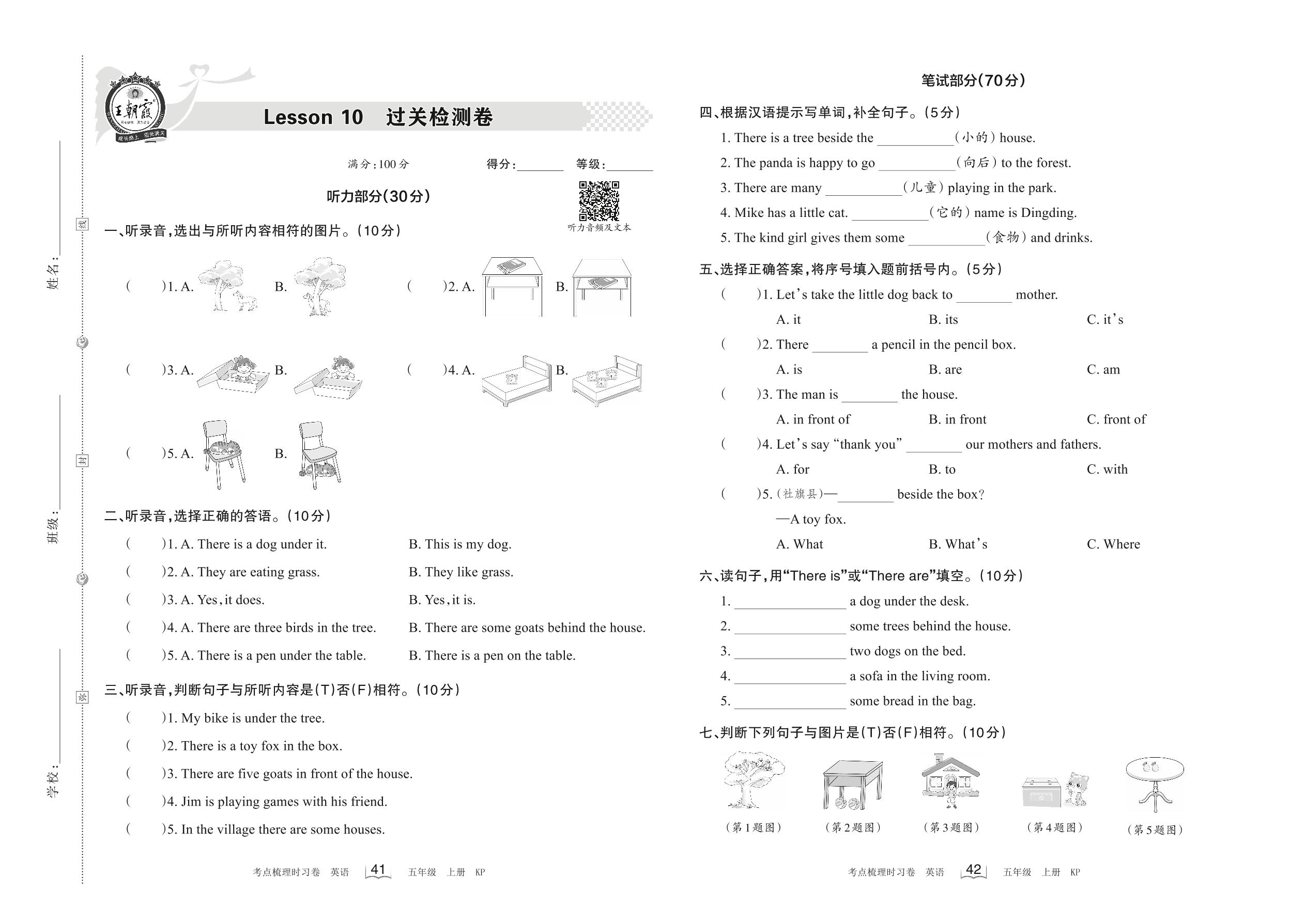 2022上册五年级英语科普版 Lesson 10 过关检测卷