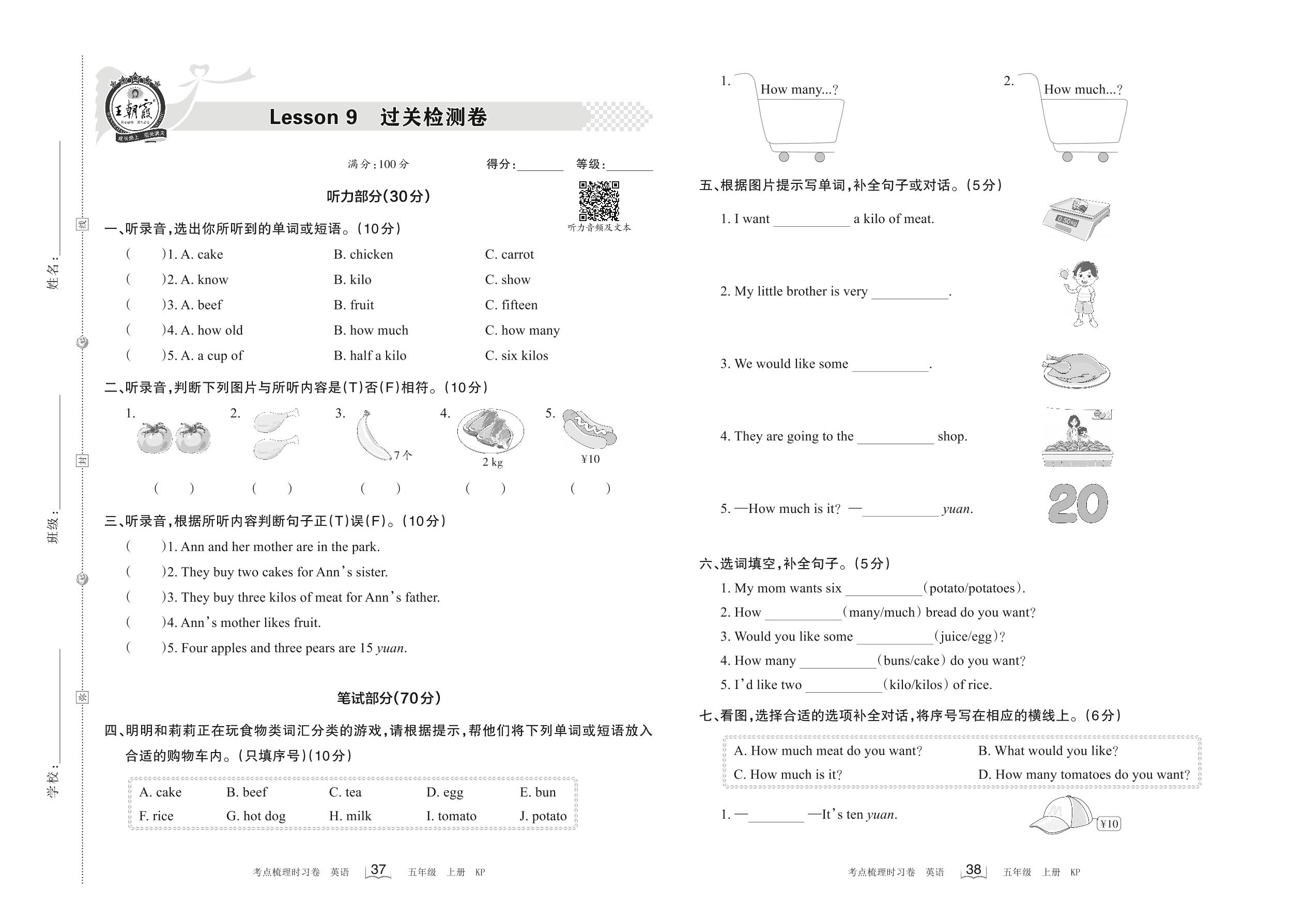 2022上册五年级英语科普版 Lesson 9 过关检测卷