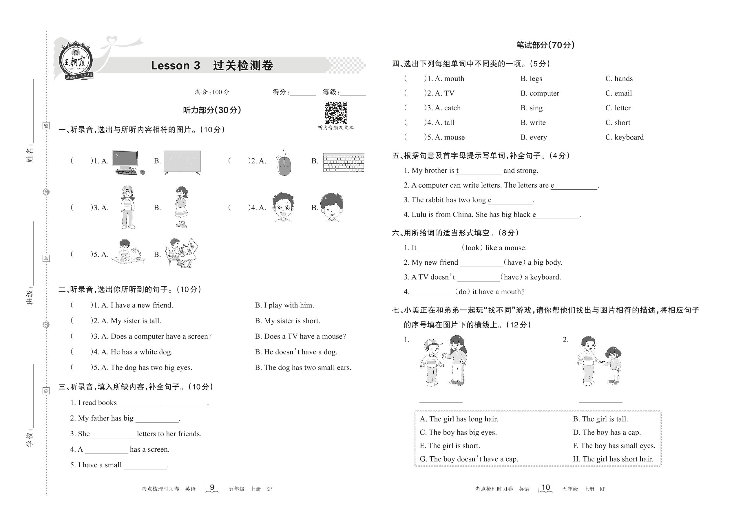 2022上册五年级英语科普版 Lesson 3 过关检测卷