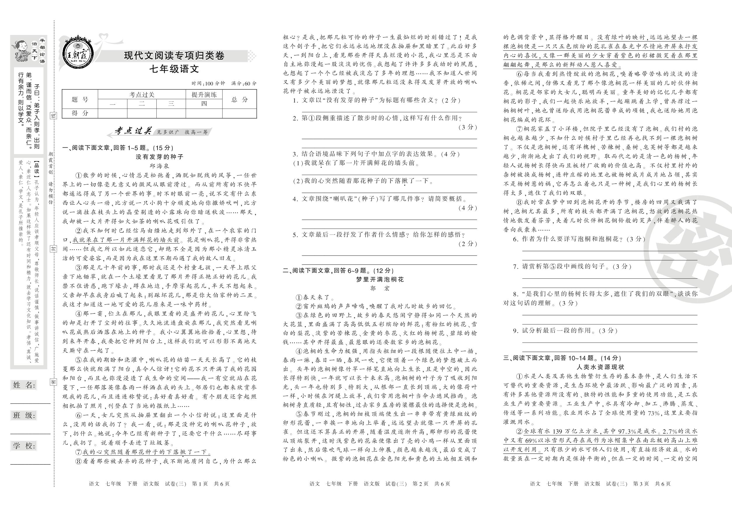 王朝霞期末专项卷七年级下册语文(语文版)_R21080243952【3】