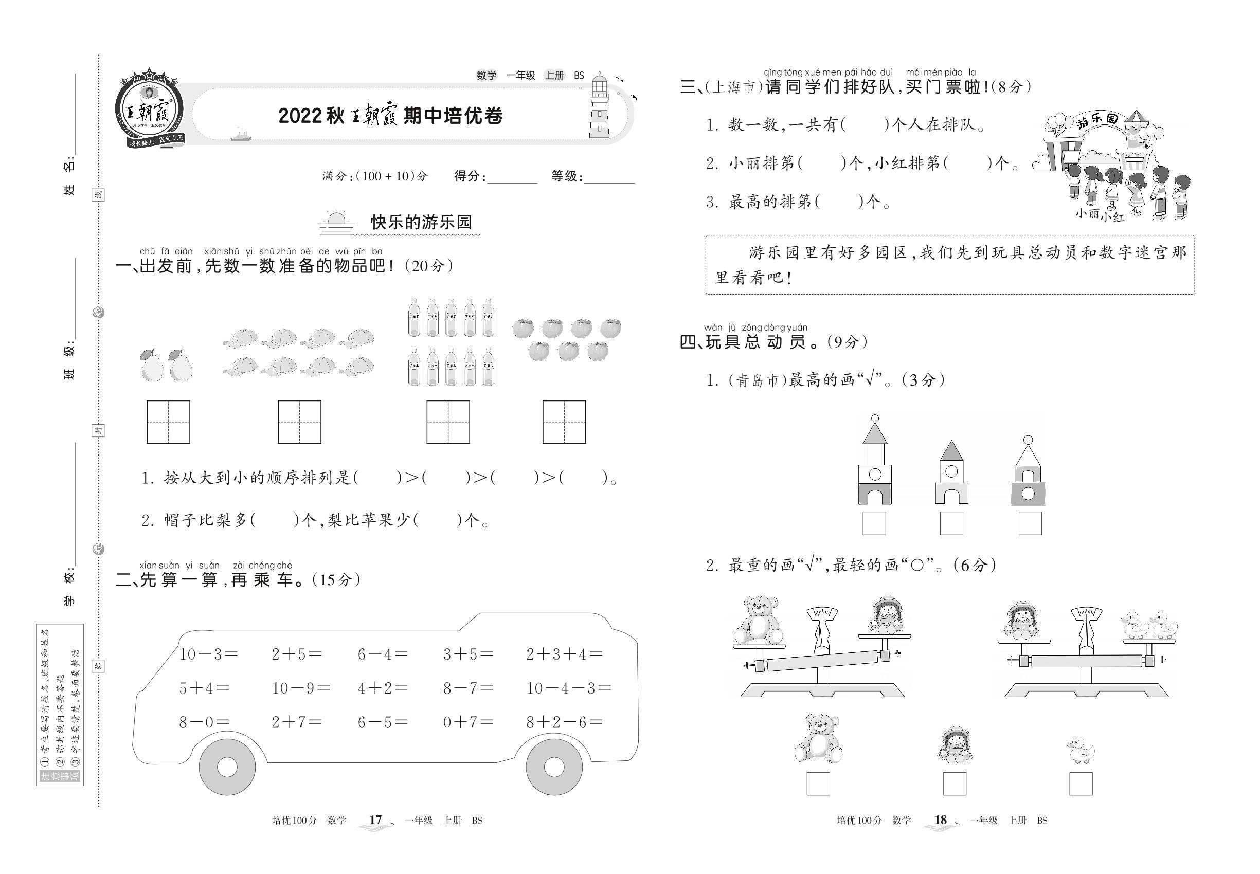 2022上册一年级数学北师版 2022秋王朝霞期中培优卷