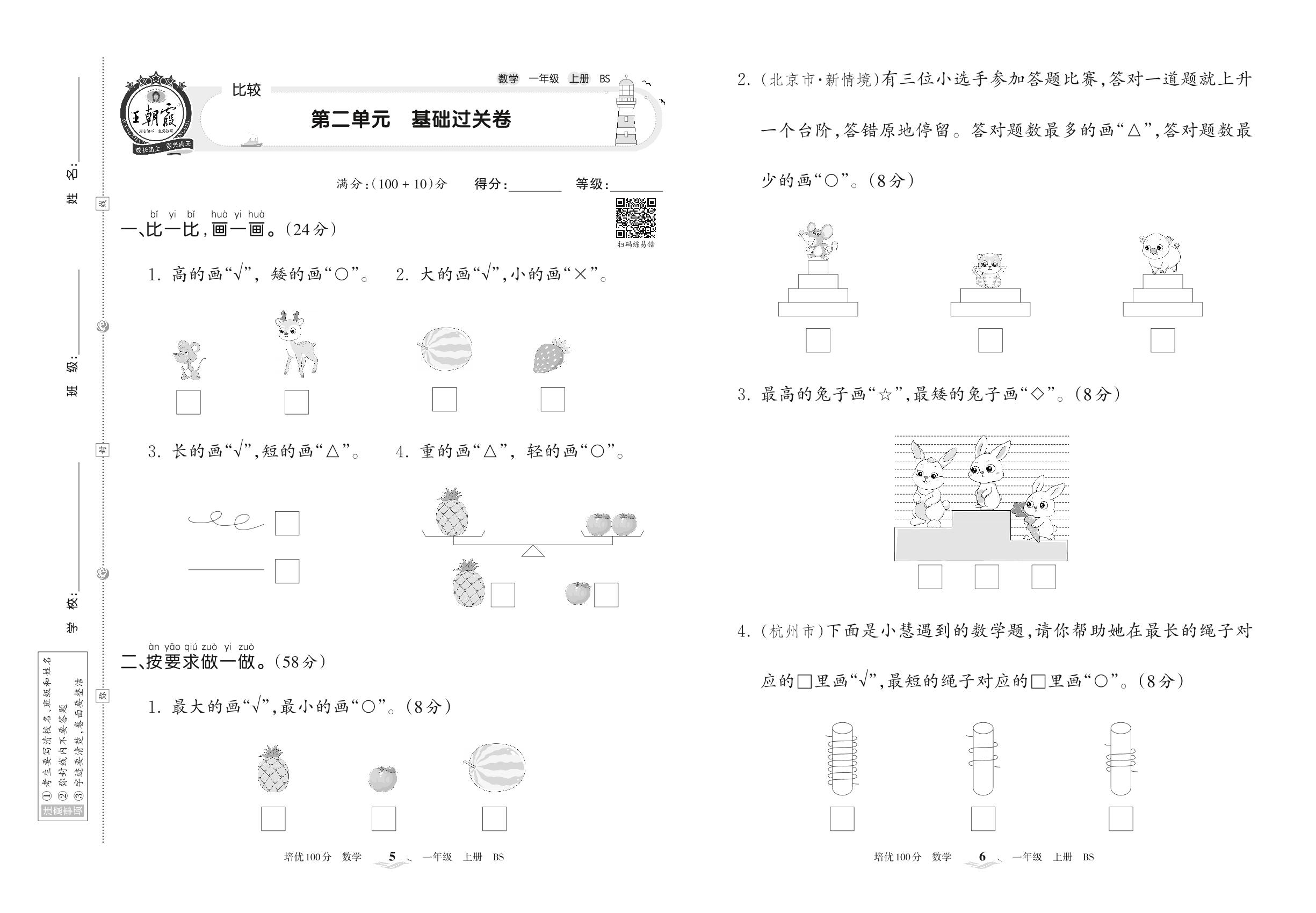 一年级数学北师版上册单元卷