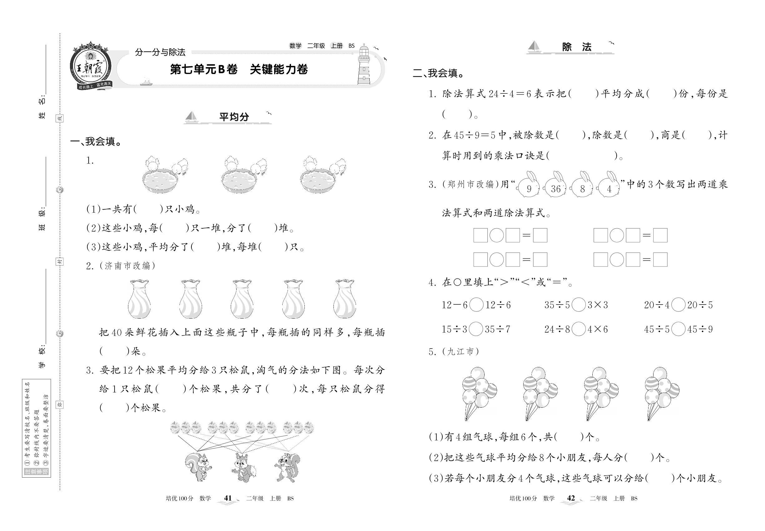 2022上册二年级数学北师版 第七单元B卷 关键能力卷