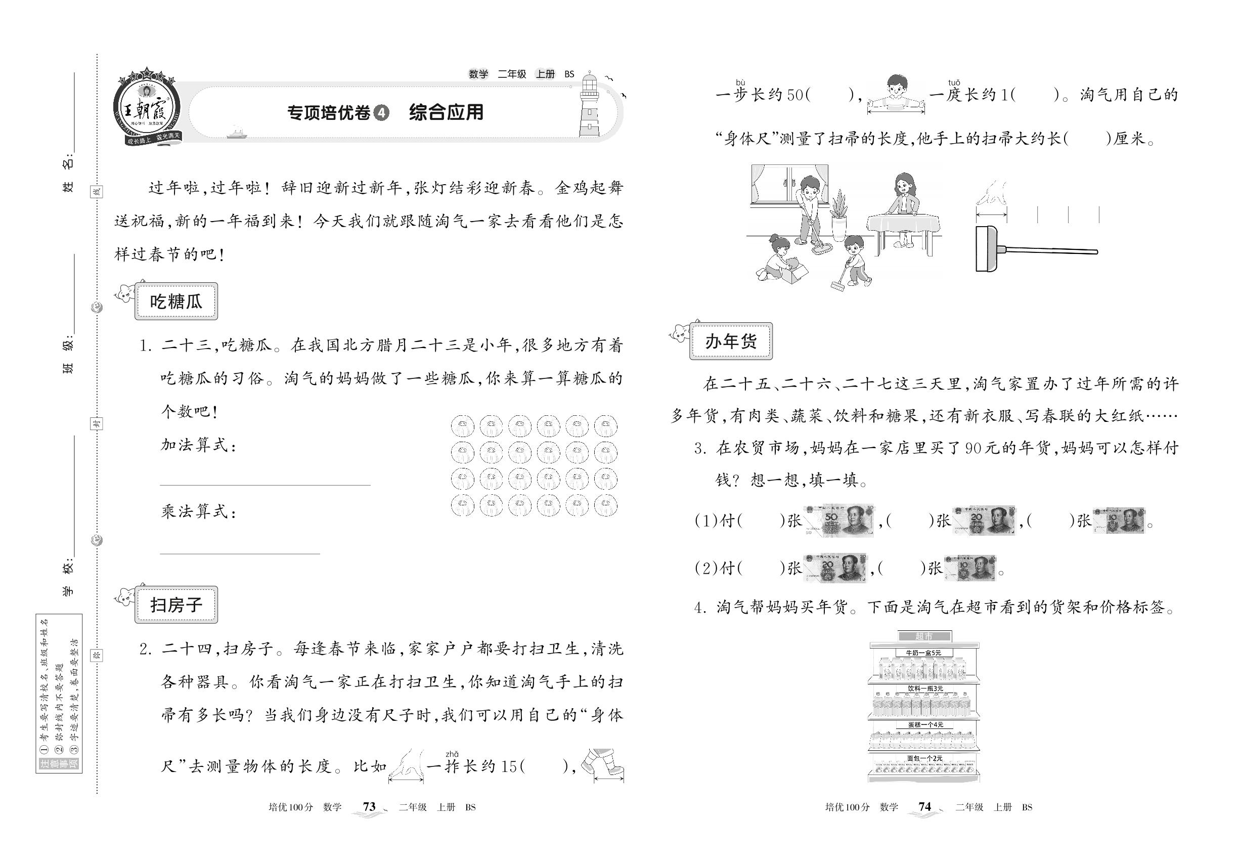 2022上册二年级数学北师版 专项培优卷4 综合应用