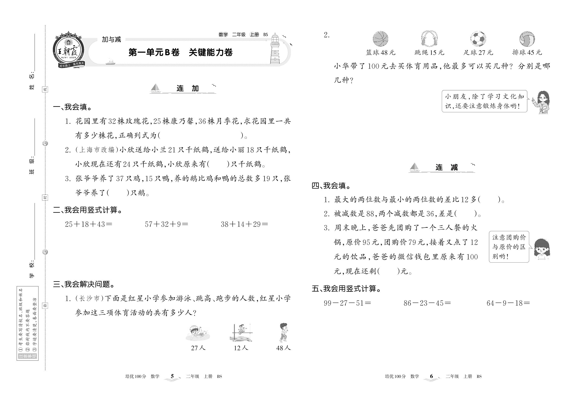 2022上册二年级数学北师版 第一单元B卷 关键能力卷