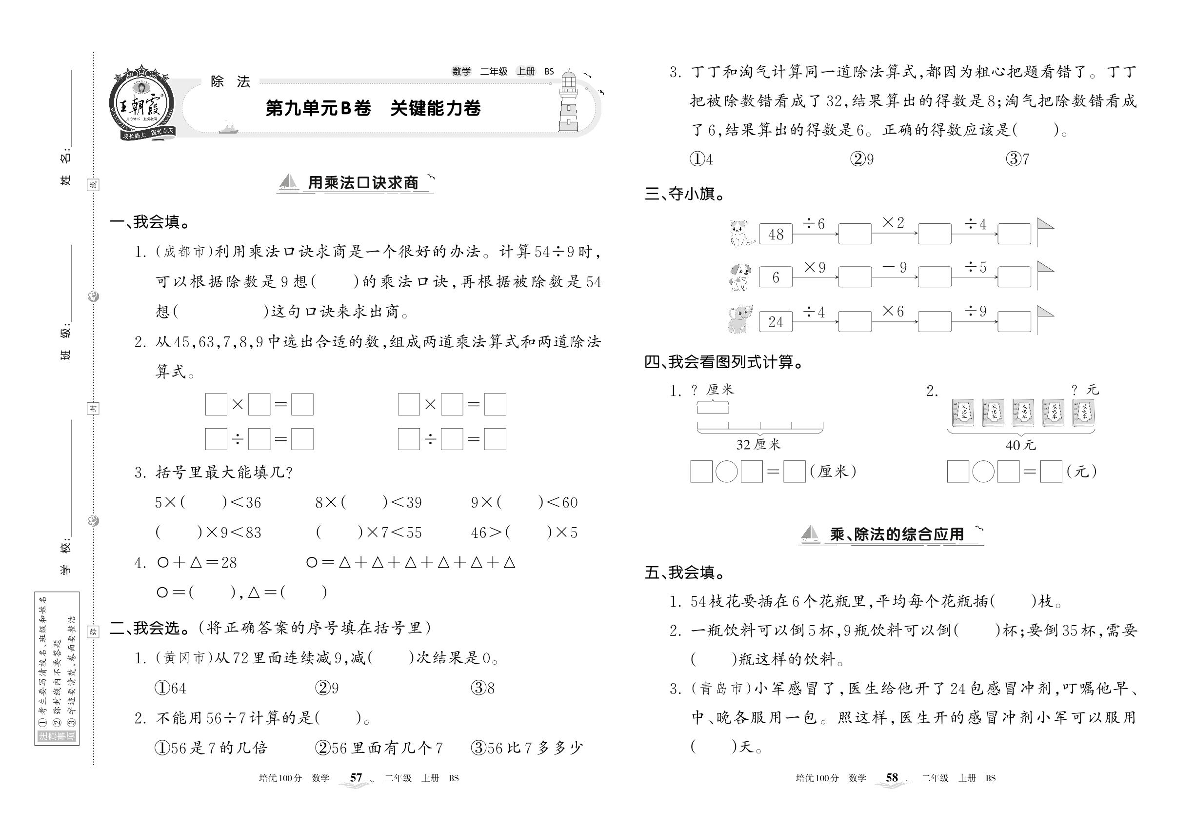 2022上册二年级数学北师版 第九单元B卷 关键能力卷