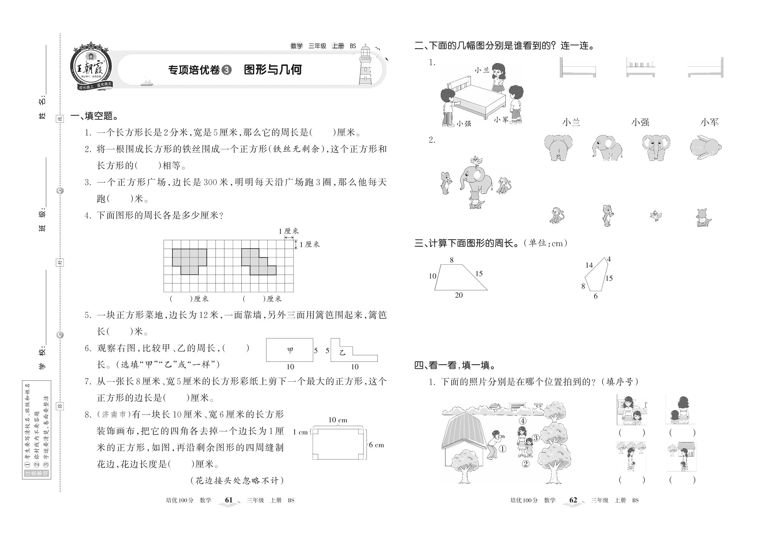 2022上册三年级数学北师版 专项培优卷3 图形与几何