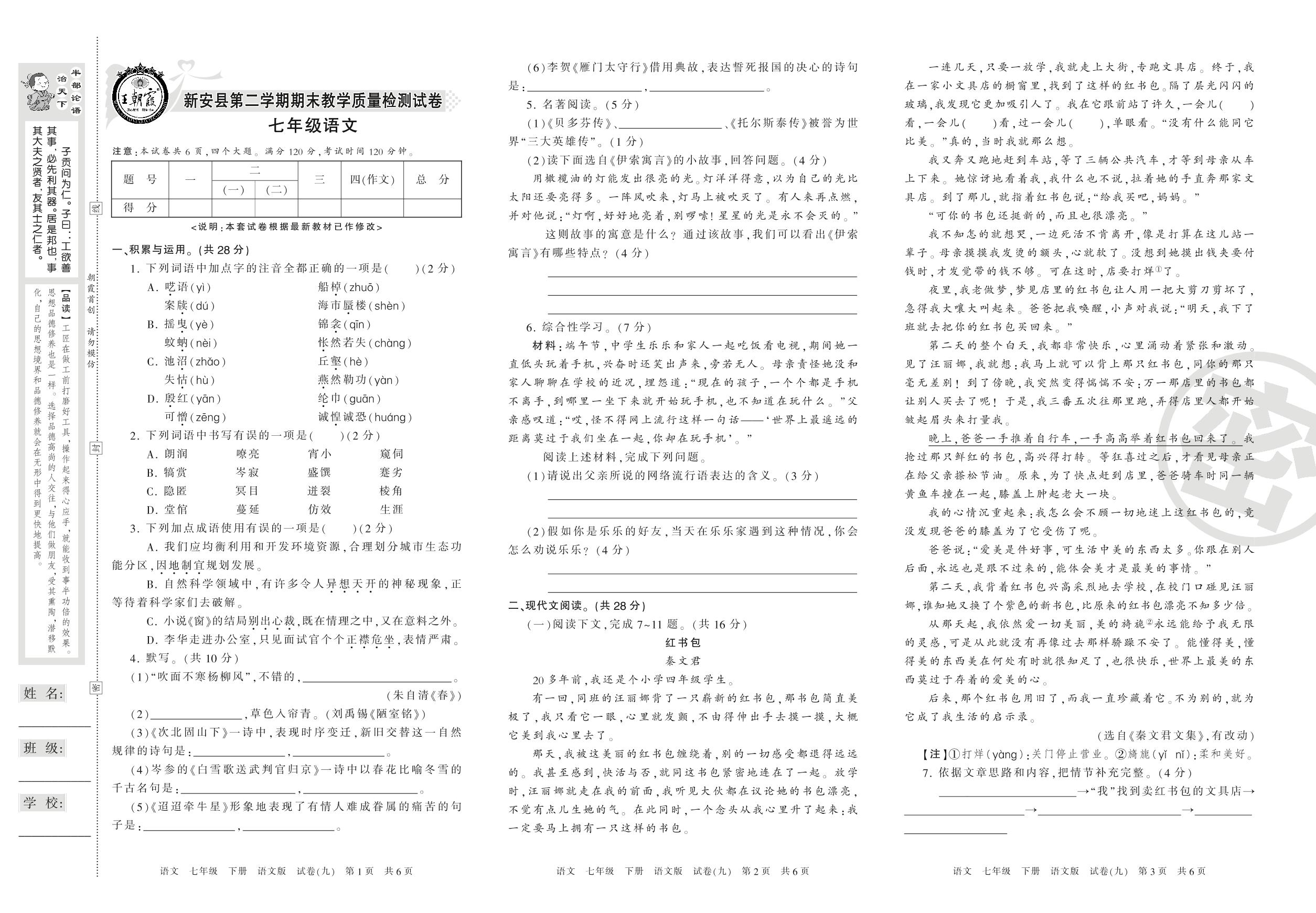 2015-2016学年第二学期新安县七年级语文试卷(语文版)【9】
