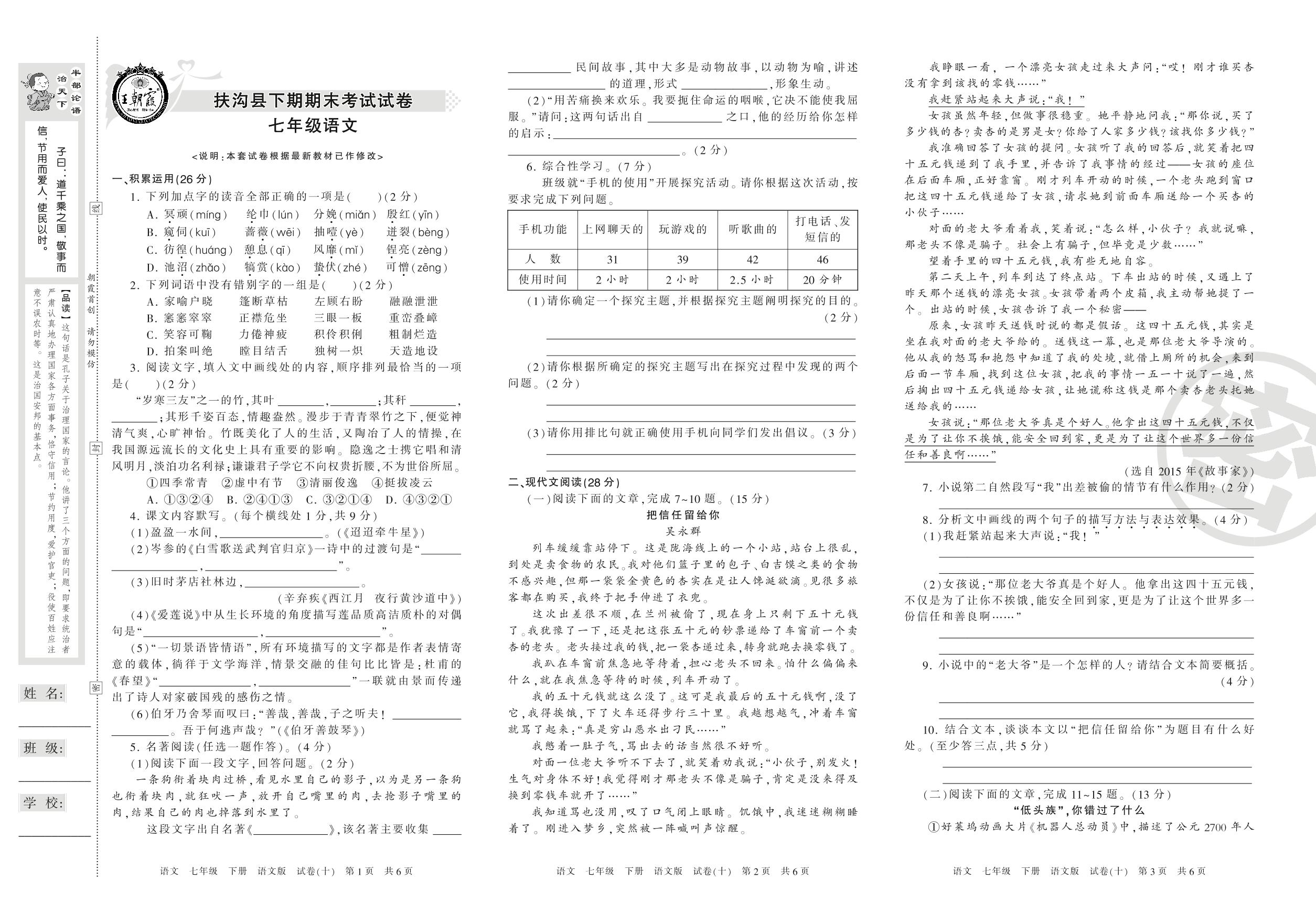2015-2016学年第二学期周口市扶沟县七年级语文试卷(语文版)_R21080244049【10】