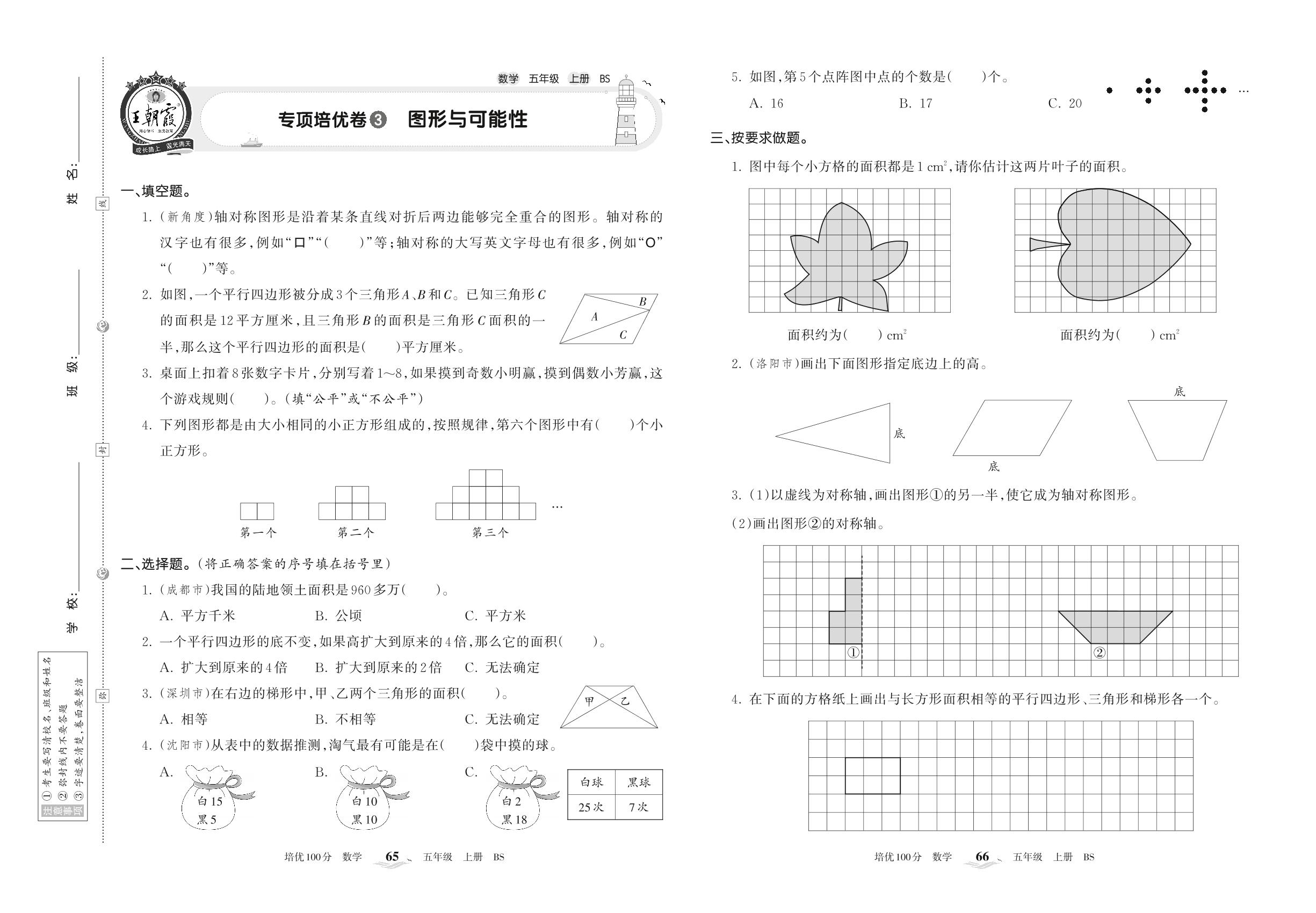 2022上册五年级数学北师版 专项培优卷3 图形与可能性