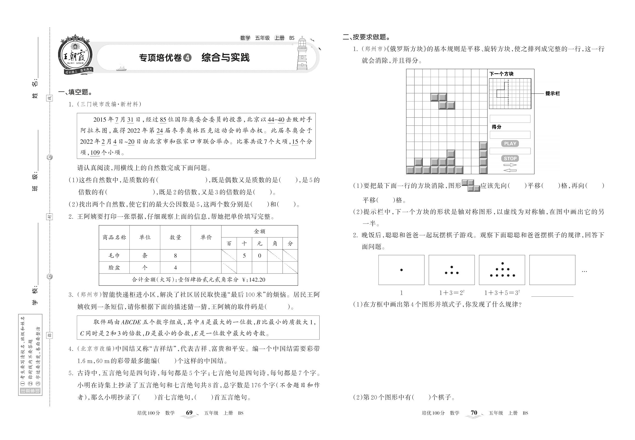 2022上册五年级数学北师版 专项培优卷4 综合与实践