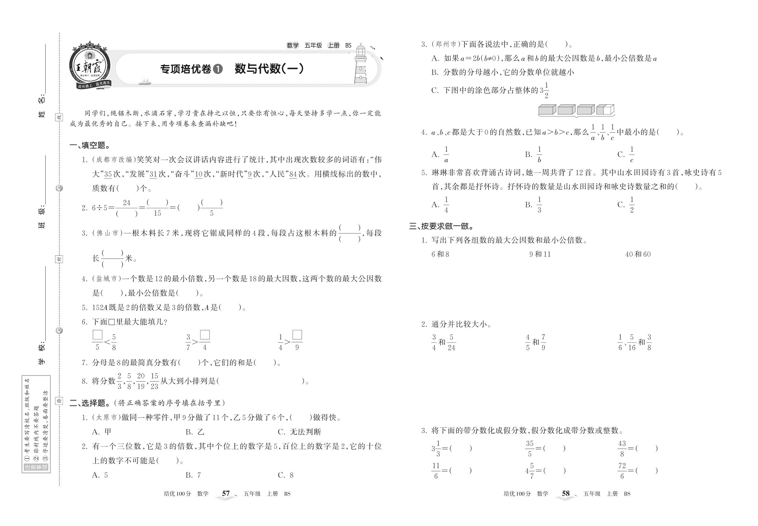 2022上册五年级数学北师版 专项培优卷1 数与代数(一)