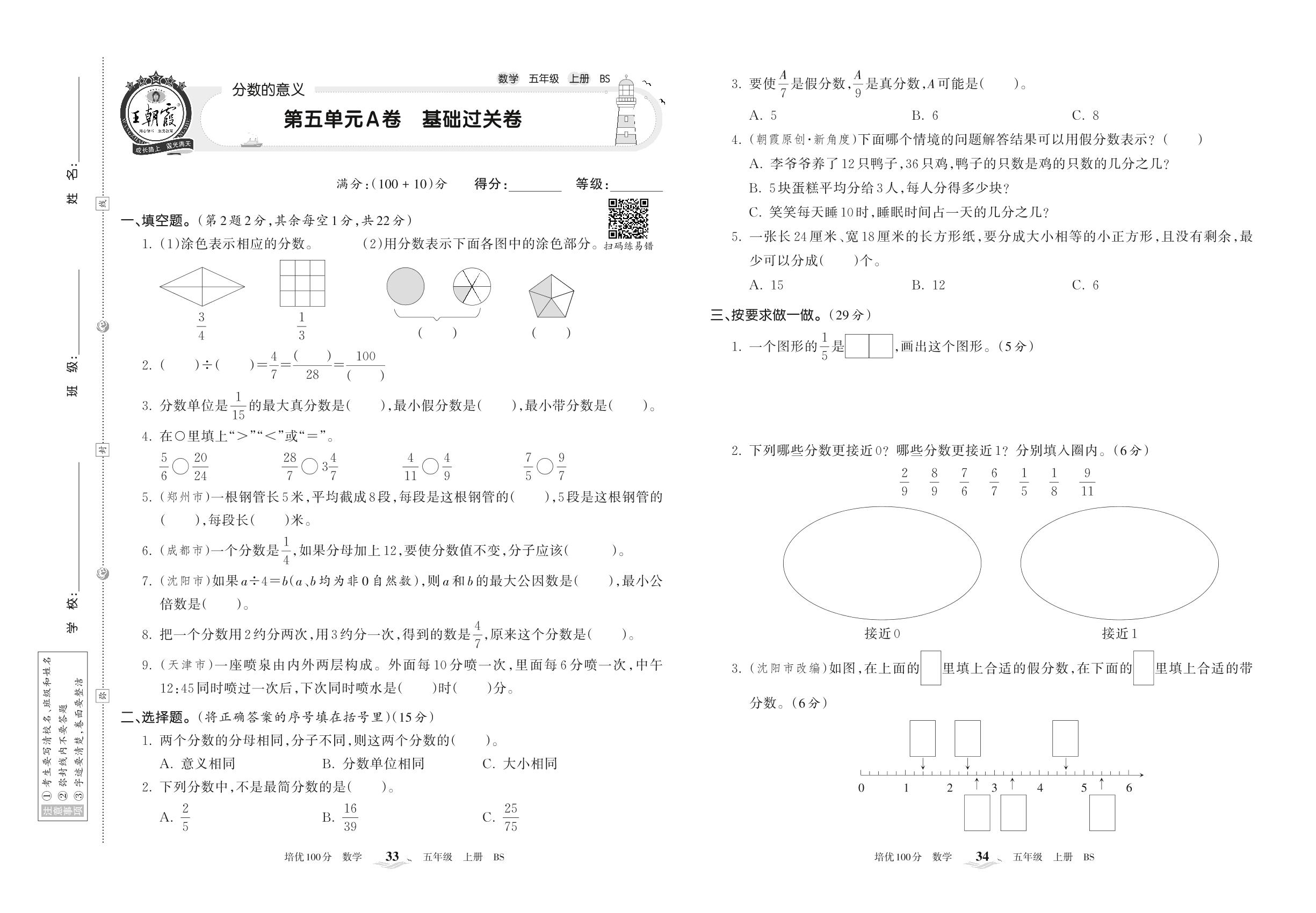 2022上册五年级数学北师版 第五单元A卷 基础过关卷
