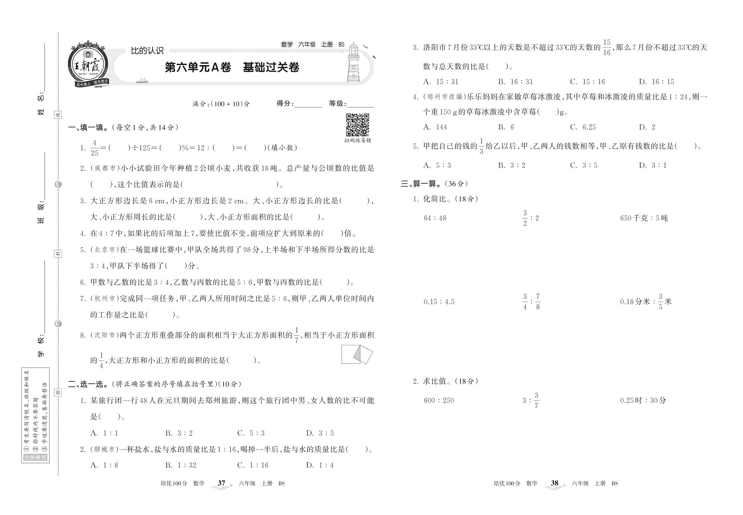 2022上册六年级数学北师版 第六单元A卷 基础过关卷
