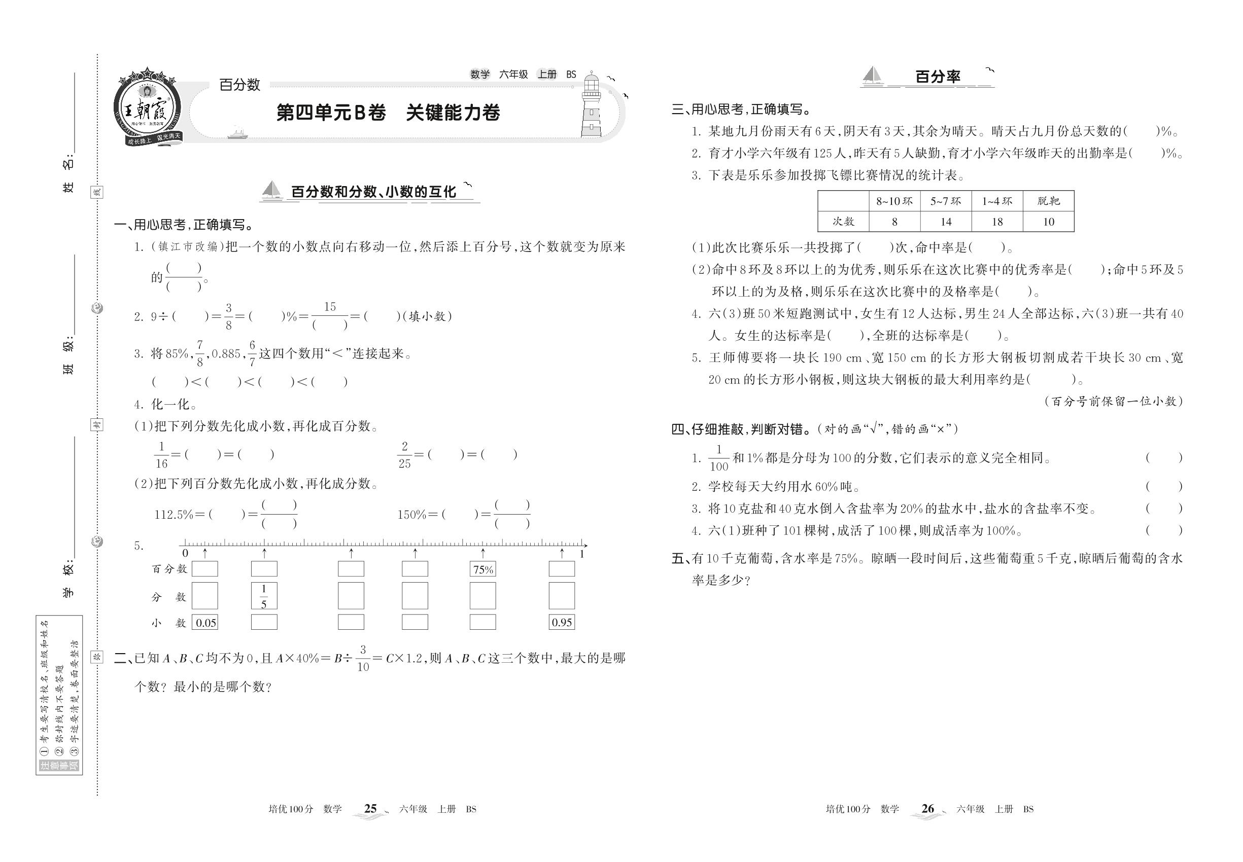 2022上册六年级数学北师版 第四单元B卷 关键能力卷