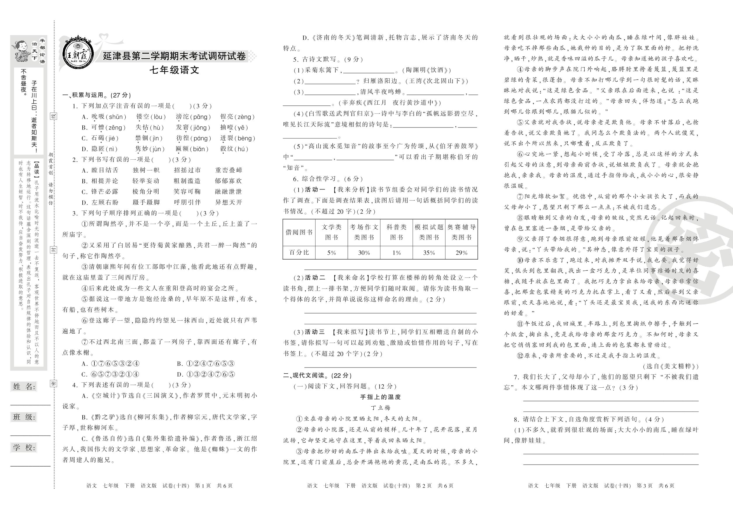 2015-2016学年第二学期新乡市延津县七年级语文试卷(语文版)【14】