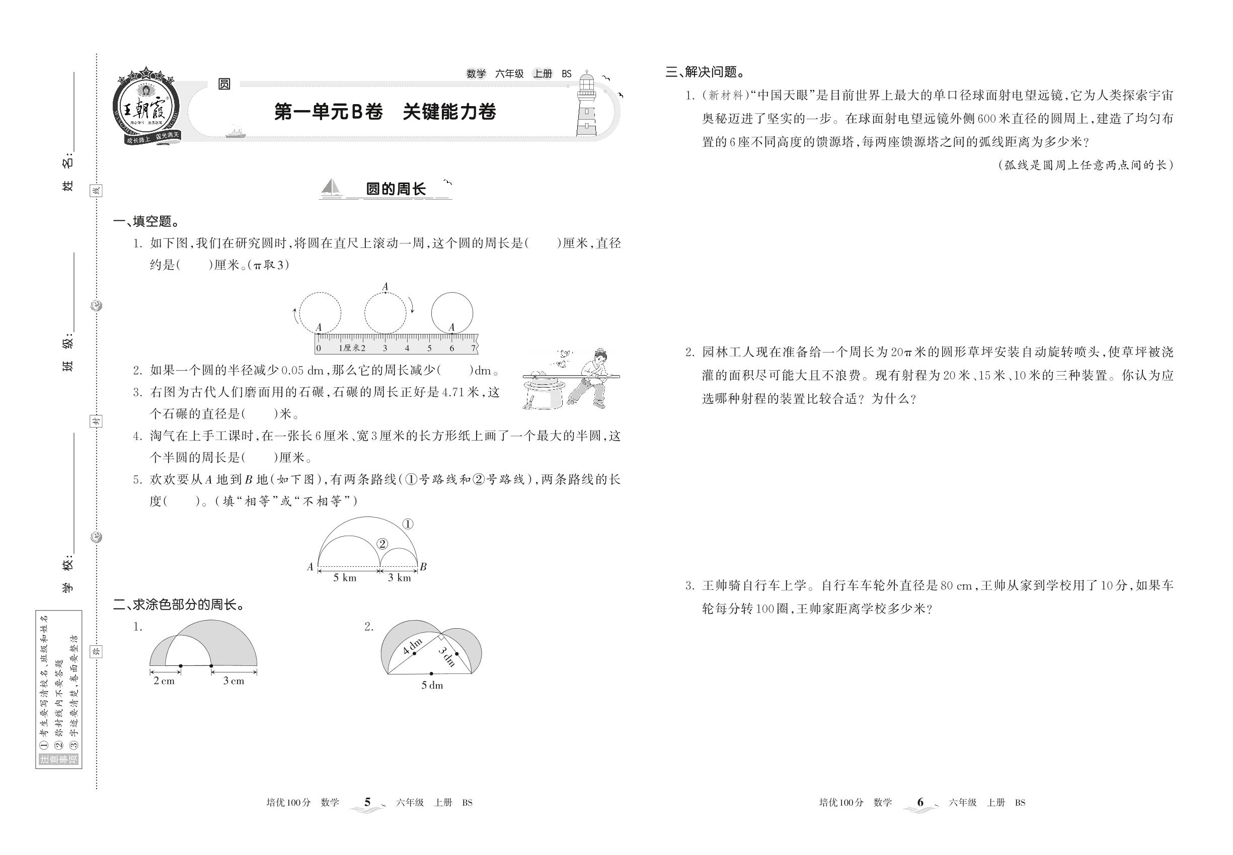 六年级数学北师版上册单元卷